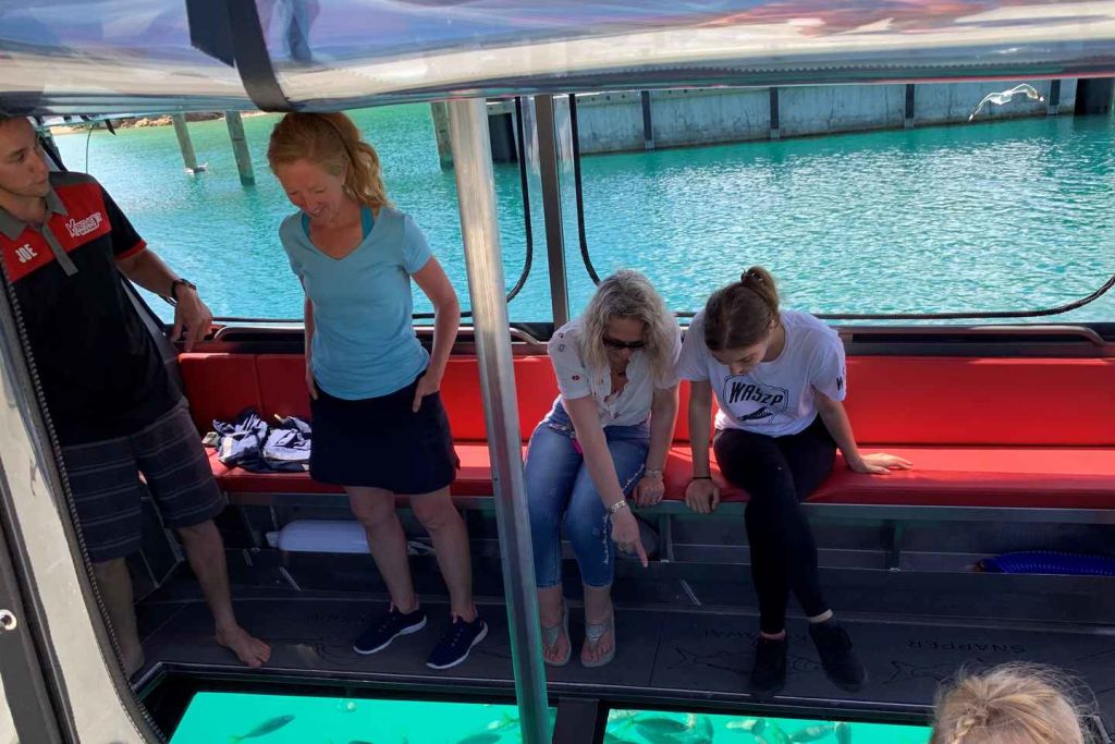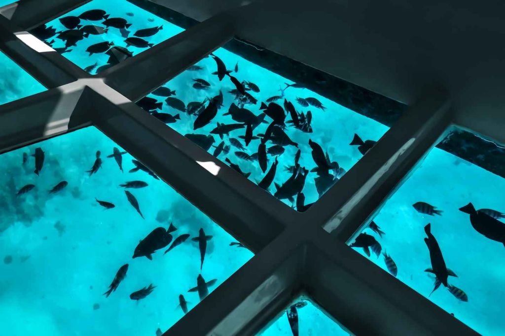 • 물고기에게 먹이를 주고 보트의 유리 바닥을 통해 물고기 관찰하기