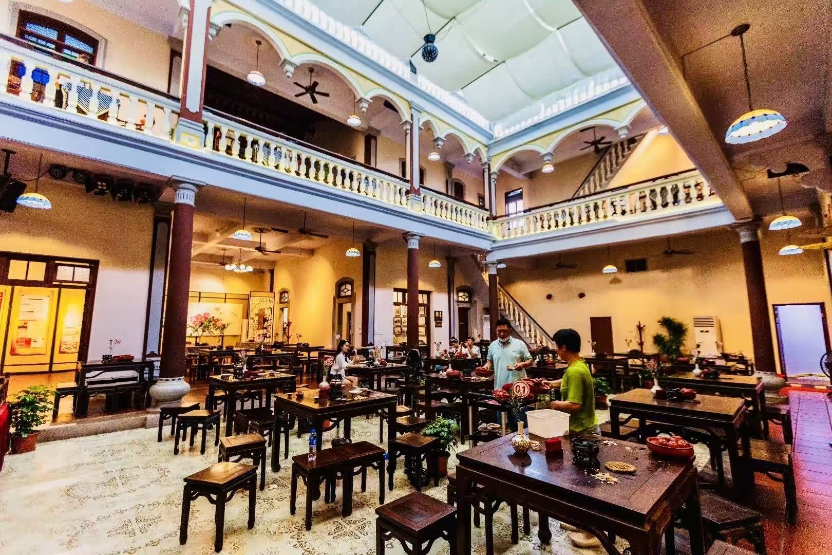 • * 자이양 찻집은 차오저우 최초로 무대를 갖춘 전통 찻집입니다. 파이팡 거리 잉쥐 골목에 위치하며, 차오저우 건축과 남양 스타일이 결합된 2층짜리 백년 된 서양식 건물로, 꽤 큰 규모를 자랑합니다. 중국식 건축 양식과 유럽식 돔, 회랑, 조각이 완벽하게 어우러져 독특한 동서양의 매력이 특히 눈길을 끕니다.