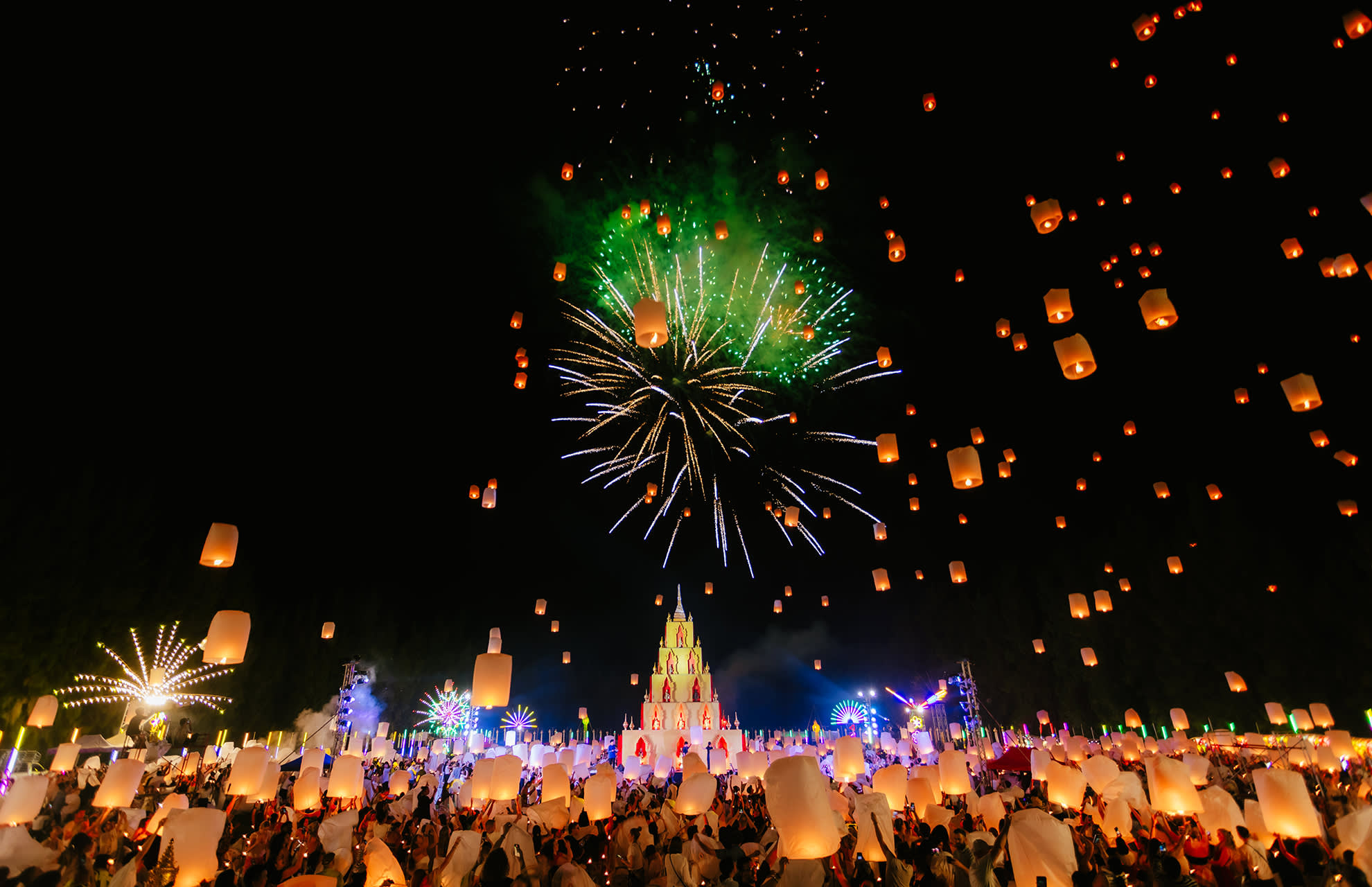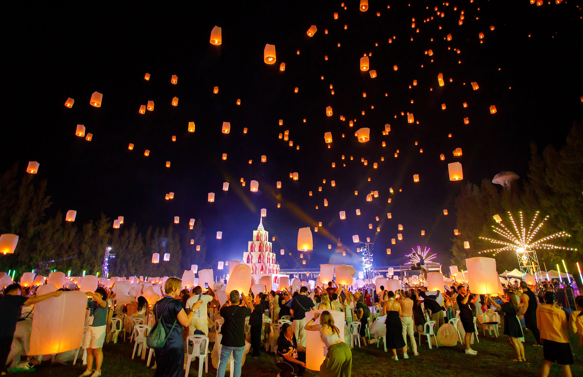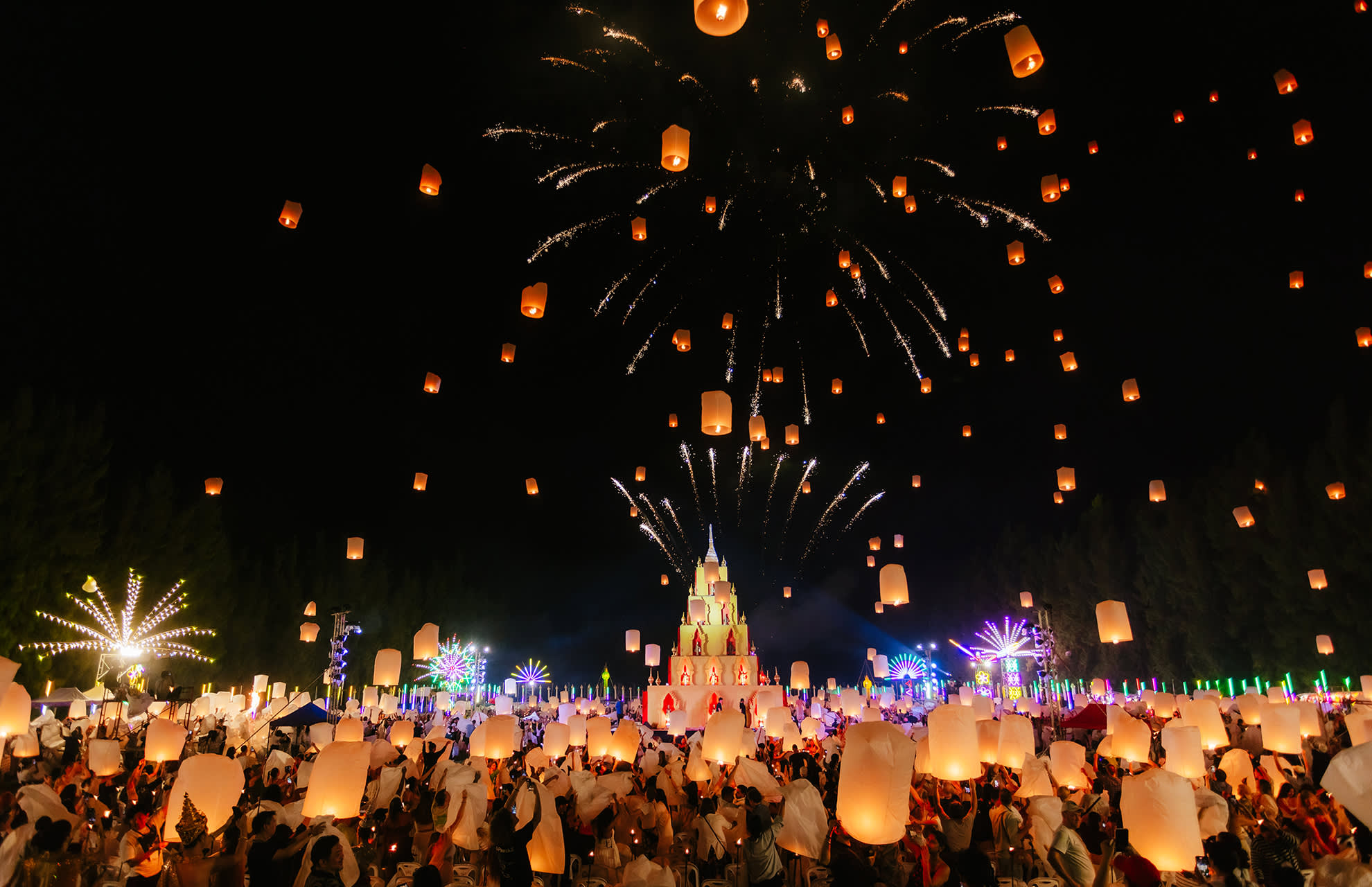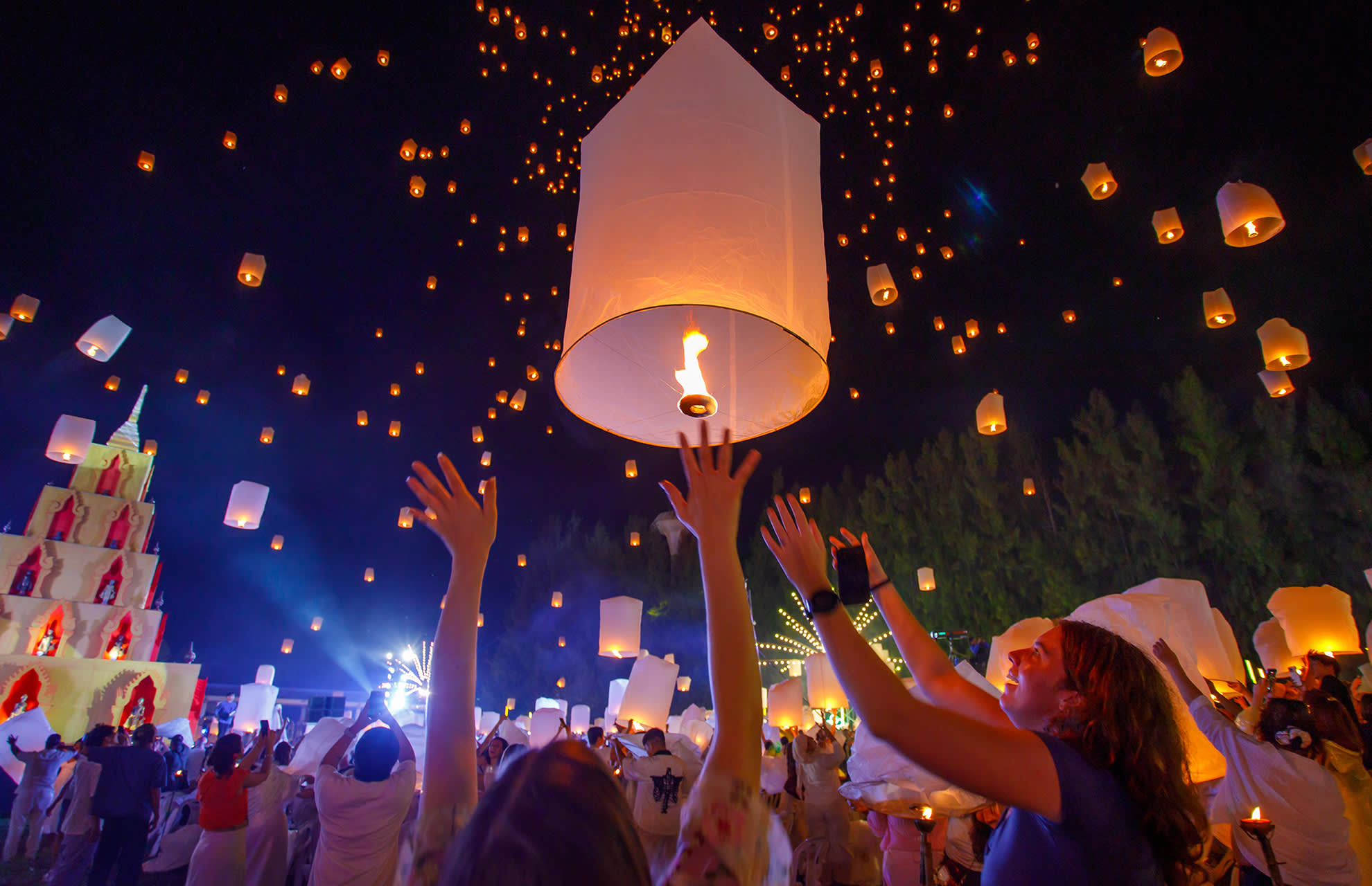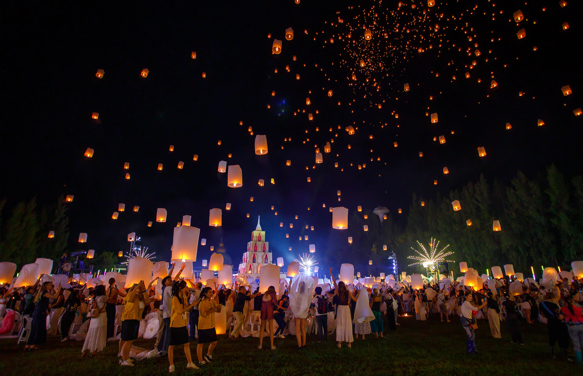 * 치앙마이에서 매혹적인 란나 이펭 축제를 경험해 보세요. 수만 개의 등불이 아름다운 음악과 함께 밤하늘을 화려하게 수놓습니다.