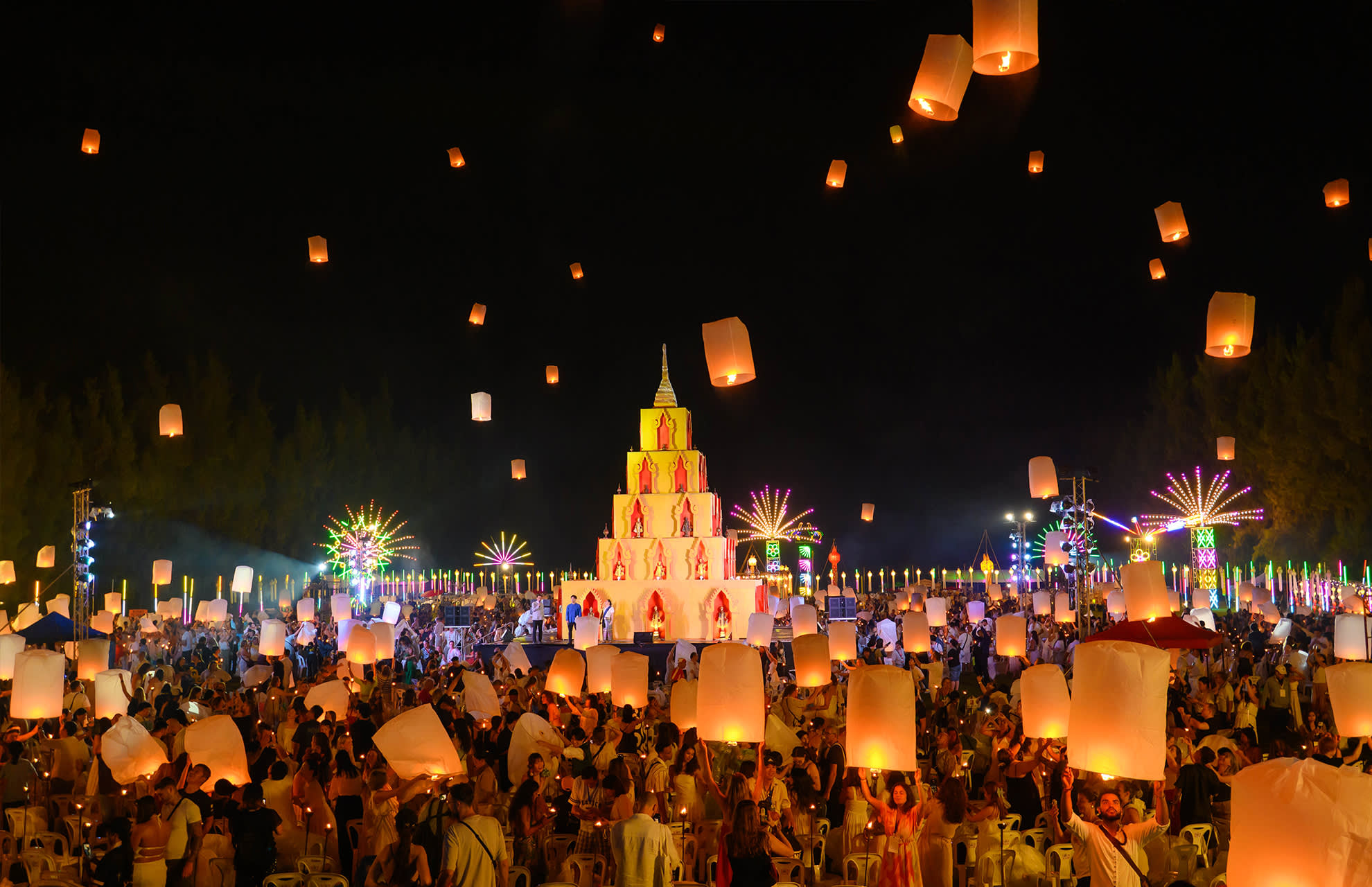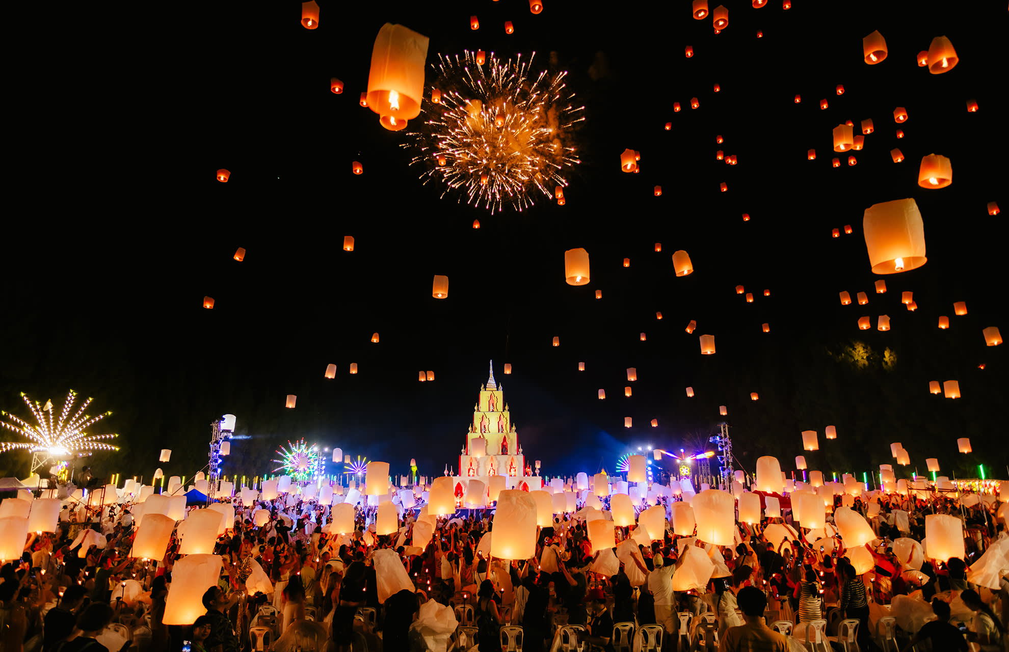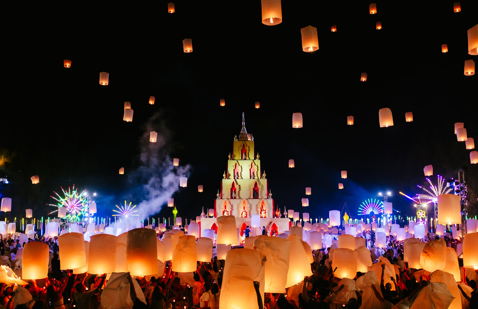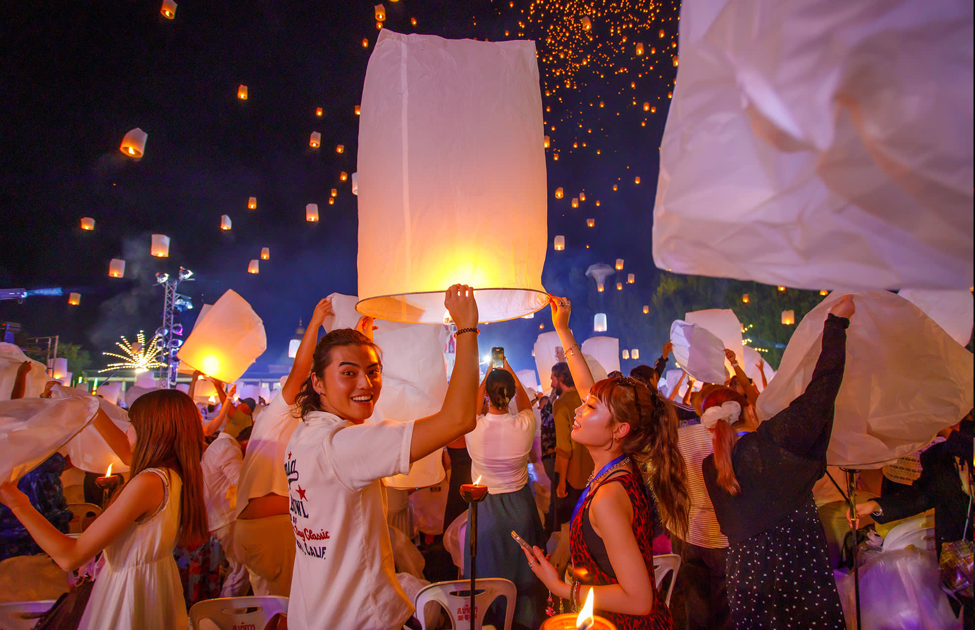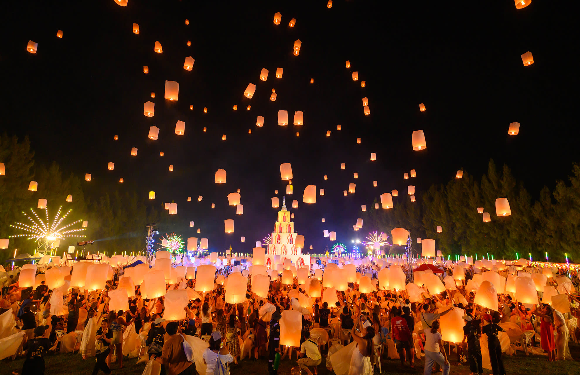 * 치앙마이에서 매혹적인 란나 이펭 축제를 경험해 보세요. 수만 개의 등불이 아름다운 음악과 함께 밤하늘을 화려하게 수놓습니다.