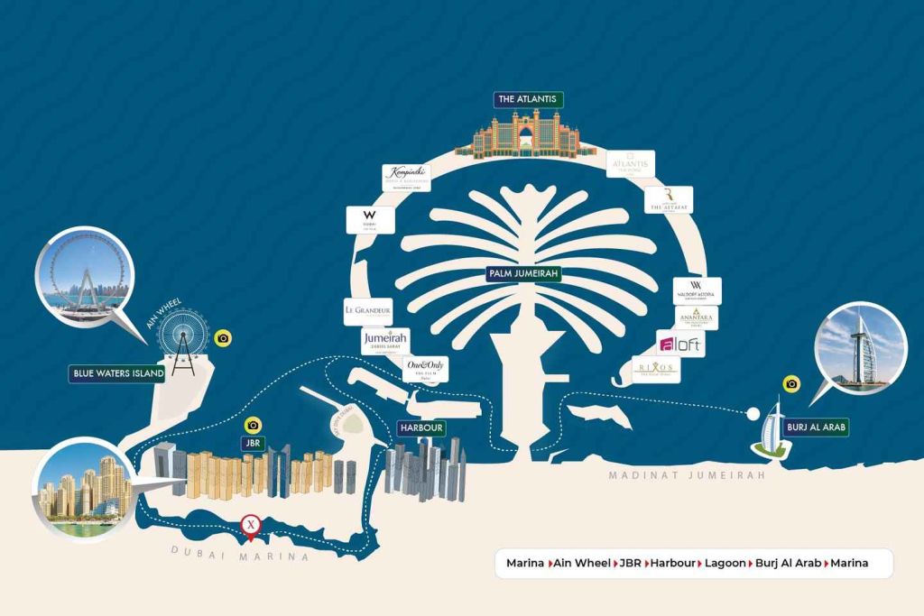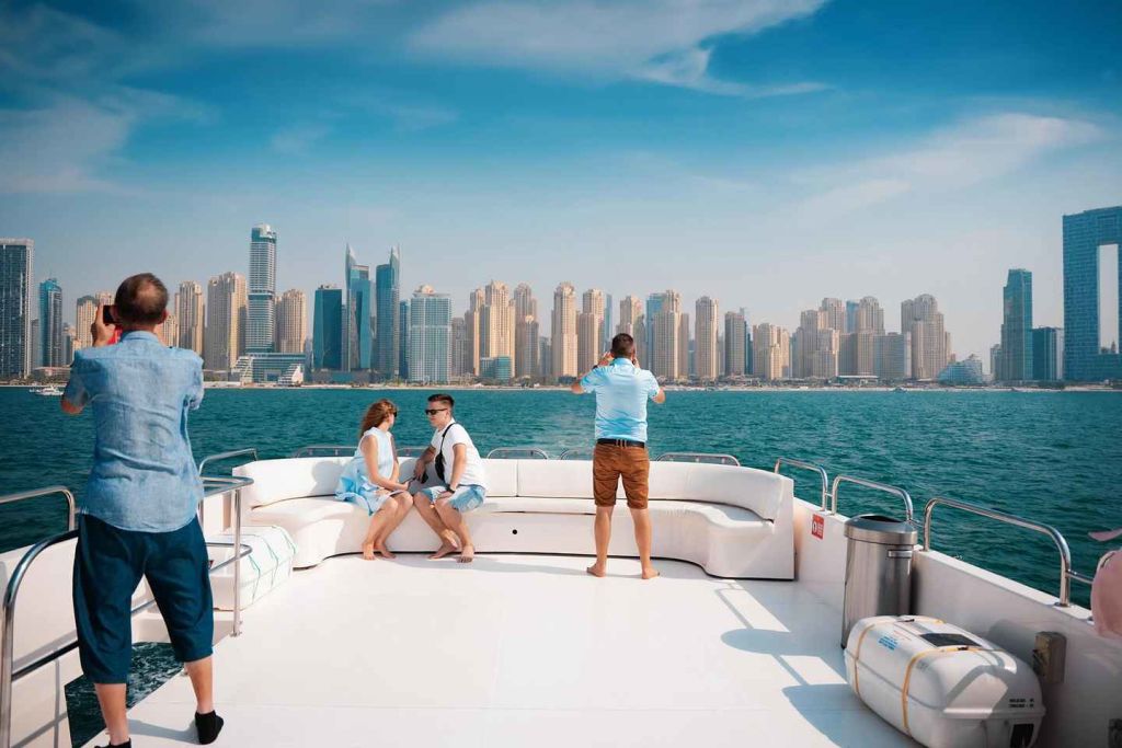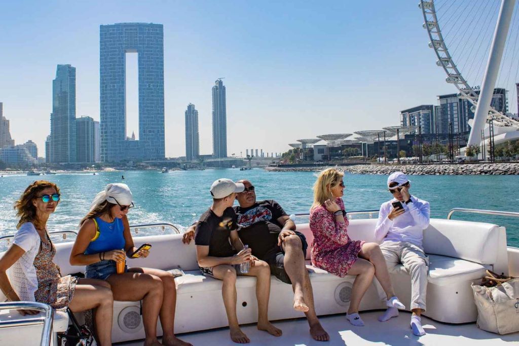 1시간 투어 루트는 두바이 마리나, 아인 휠, JBR, 두바이 하버를 돌며 선상에서 물과 열대 음료가 제공됩니다.