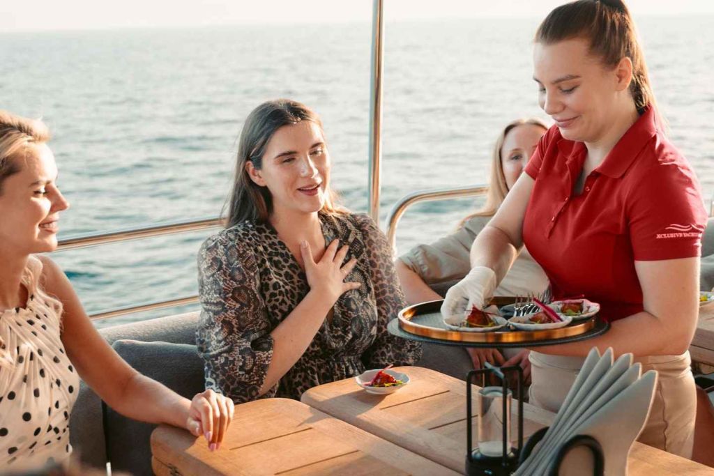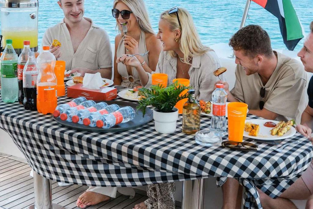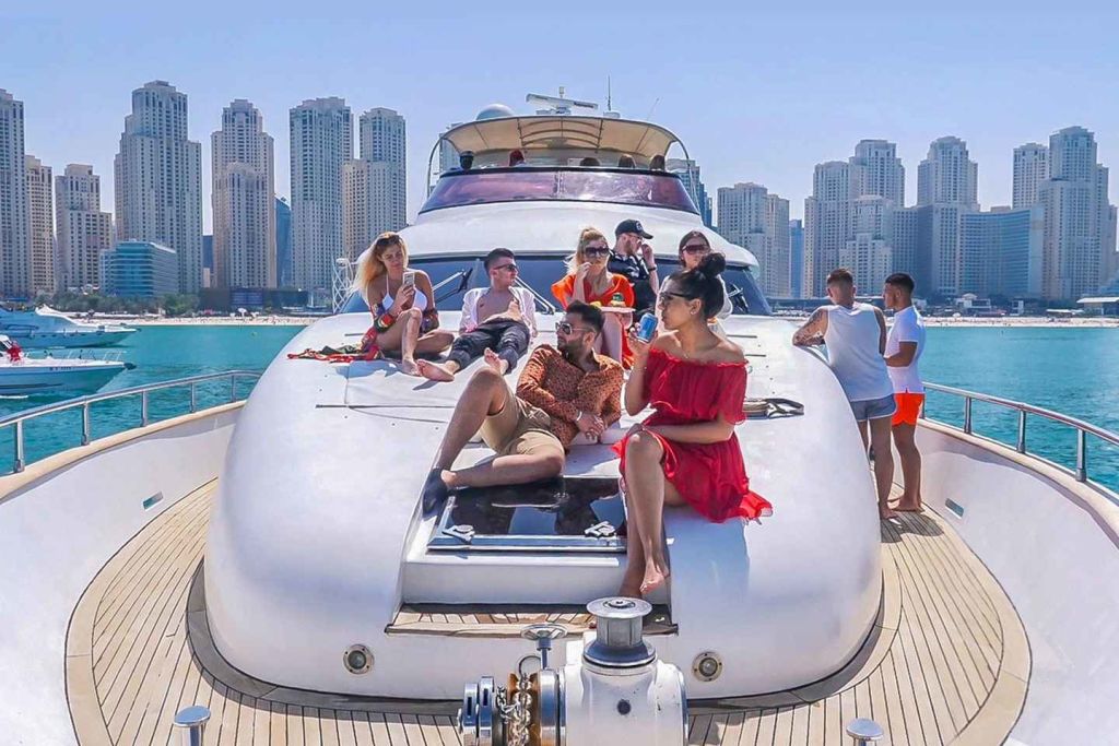 15년 동안 운영되어 매년 100만 명 이상의 손님을 모시는 요트 전세 회사와 함께 두바이 주변을 크루즈로 탐험하며 물 위에서 두바이의 하이라이트를 감상하세요. 두바이 마리나를 거쳐 블루워터 섬으로 항해하세요. 두바이 아이로 크루즈를 타고 유명한 주메이라 비치와 팜을 구경하고 부르즈 알 아랍을 지나세요.