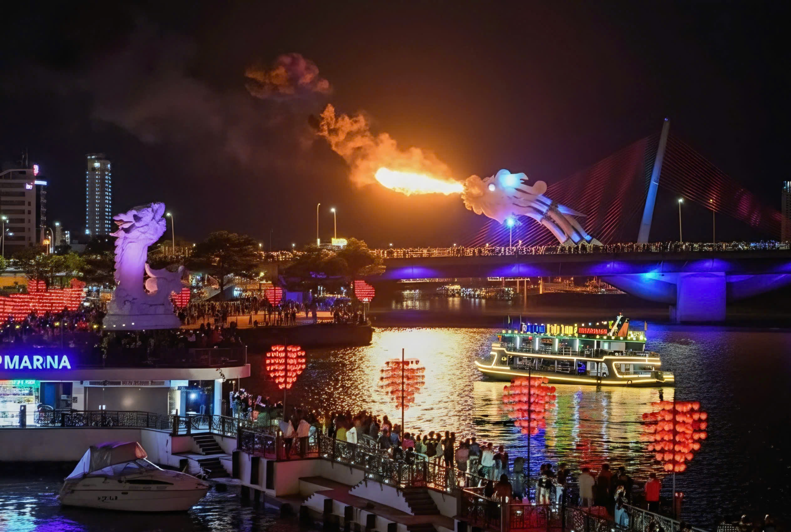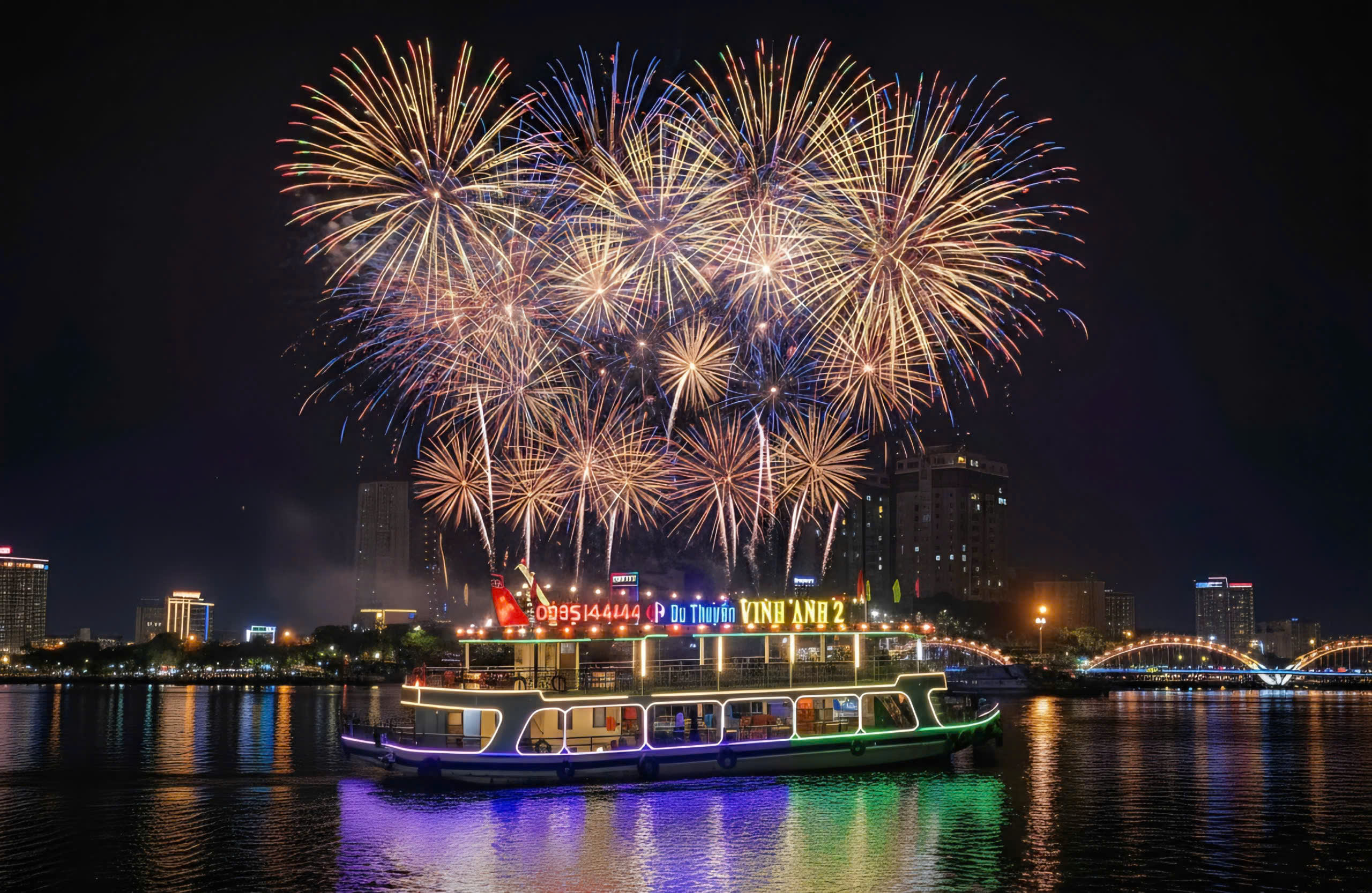 * 깨끗하고 넓은 보트에 탑승하여 다낭의 주요 명소를 지나면서 아름다운 경치를 감상하세요. * 카메라를 준비하여 한강 다리, 용다리 등 아름다운 광경을 담아보세요. * 여행 중 신선한 과일을 즐기며 진정으로 잊을 수 없는 밤을 보내세요.