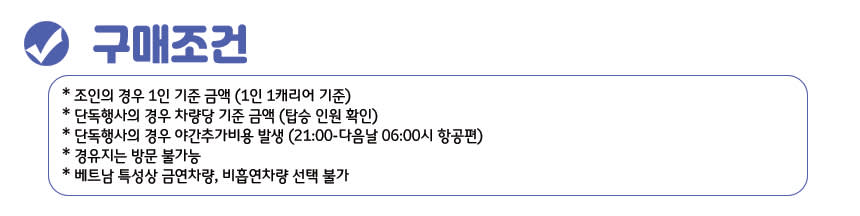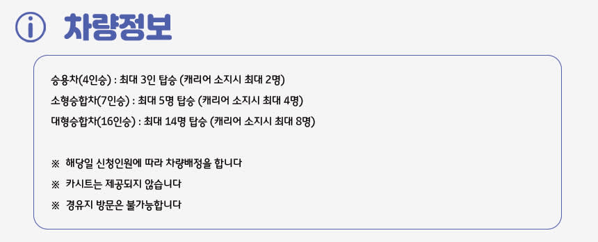 - 단독 예약시 : 차량 1대 기준 가격이고, 인원당 가격이 아닙니다. (차량 1대 금액)