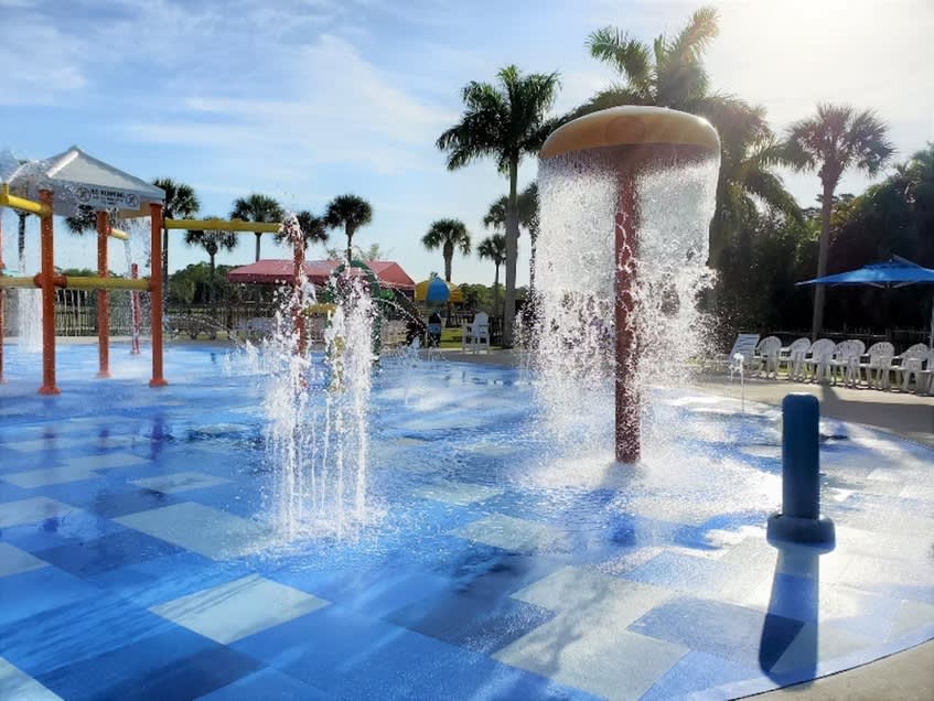 * 23개의 재미있는 물놀이 요소, 슬라이드, 신나는 스플래시 액티비티가 있는 사파리 스플래시 스프레이그라운드에서 더위를 식혀보세요.