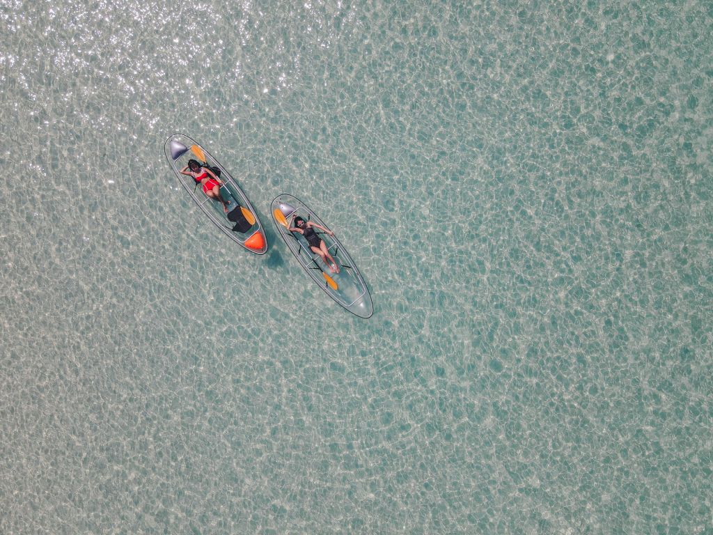 워터 플레이 그라운드에서 워터 슬라이드 및 스노클링을 체험할 수 있으며 해변에서 투명카약과 섭보드를 체험할 수 있어요.