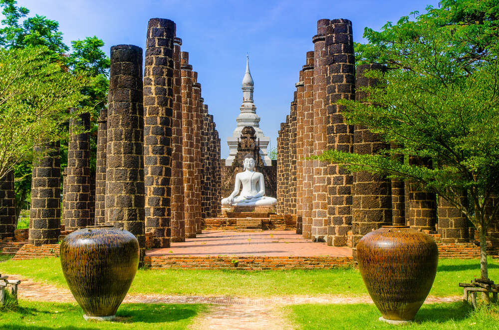 왕궁을 비롯해 다양한 사원, 탑, 석주, 전통 타이 가옥 모형과 재건된 역사적 유적지를