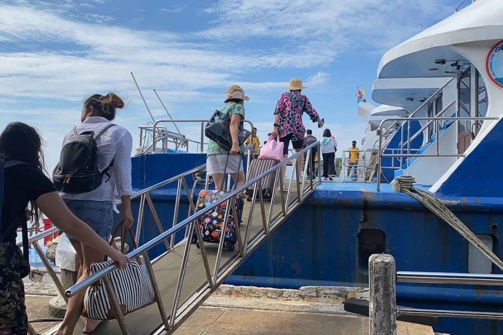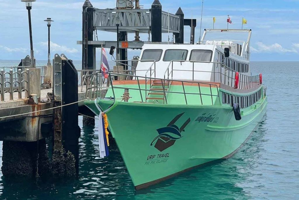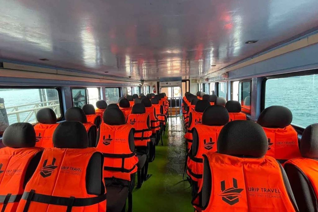 크라비에 있는 호텔에서 픽업 서비스를 이용하면 페리 선착장으로 바로 이동합니다. 여행하는 동안 에어컨이 완비된 편안한 페리 안에서 편안히 앉아 고요한 바다 경치를 감상하며 휴식을 취하세요.