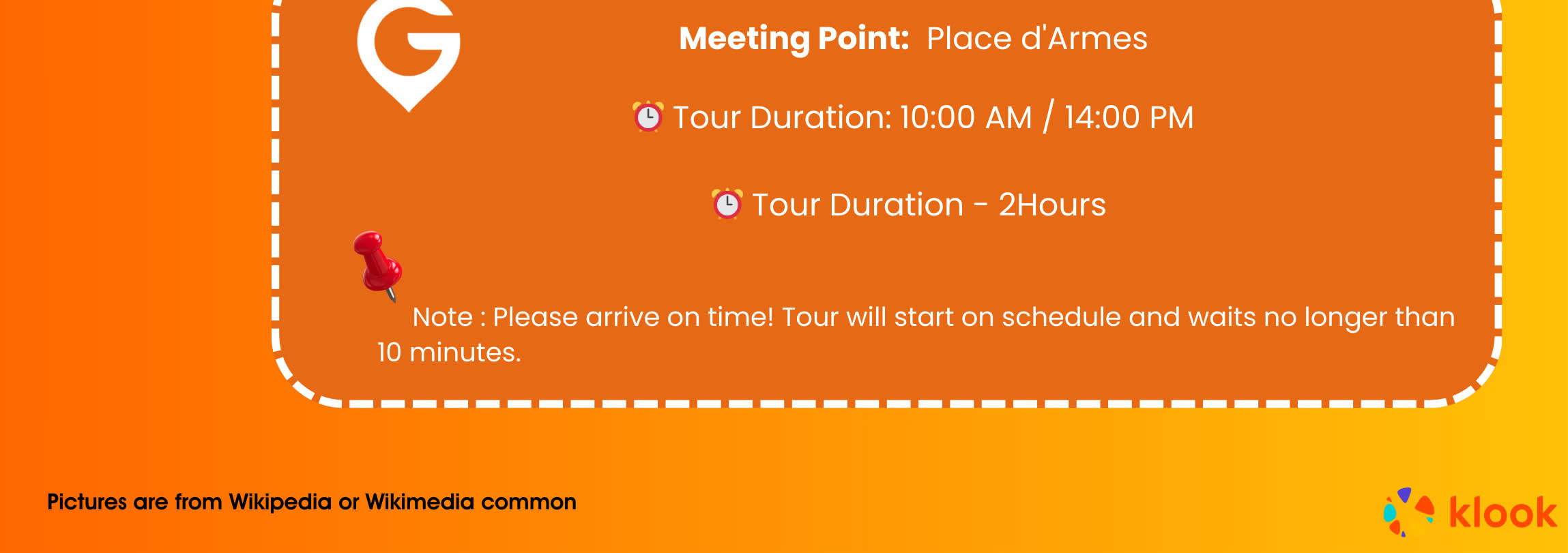 ▶조인 투어 - 이용요건 * 만 0-1세는 무료입니다. * 만 0-18세는 반드시 티켓을 소지한 성인을 동반해야 합니다. * 만 2세 이상은 성인과 동일한 요금이 적용됩니다. * 그룹 규모: 참여자 수 4-15인 * 본 액티비티의 최소 참여 인원은 4인입니다. 최소 참여 인원이 채워지지 않을 경우, 다른 날짜로 변경하거나 전액 환불이 가능합니다. - 추가정보 * 본 투어는 계단 이용을 포함하여 도보량이 상당히 많은 투어입니다. 적합한 체력을 갖추신 분들에게 참여를 권장합니다. - 준비물 * 자외선 차단제 / 선글라스 / 모자 / 현금 / 생수 - 복장 * 원활한 입장을 위해 슬리퍼, 반바지, 탱크톱, 민소매 셔츠 등의 착용은 지양해주세요. * 당일 기상 상황에 맞는 복장을 착용하세요.