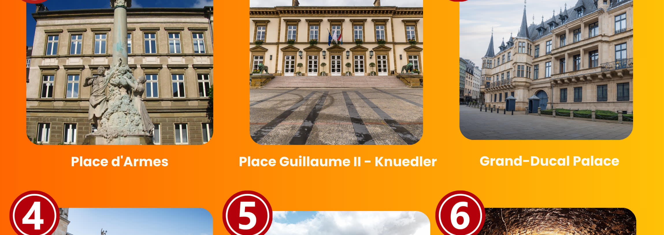 룩셈부르크 시티의 매력을 도보 투어로 발견해보세요. Place d'Armes에서 시작하여 Grand-Ducal Palace, 노트르담 대성당과 탁 트인 Corniche의 전망과 같은 랜드마크를 탐험해보세요. 역사적인 Casemates Tunnels를 방문하여 도시의 풍부한 역사와 멋진 건축물에 흠뻑 빠져보세요.