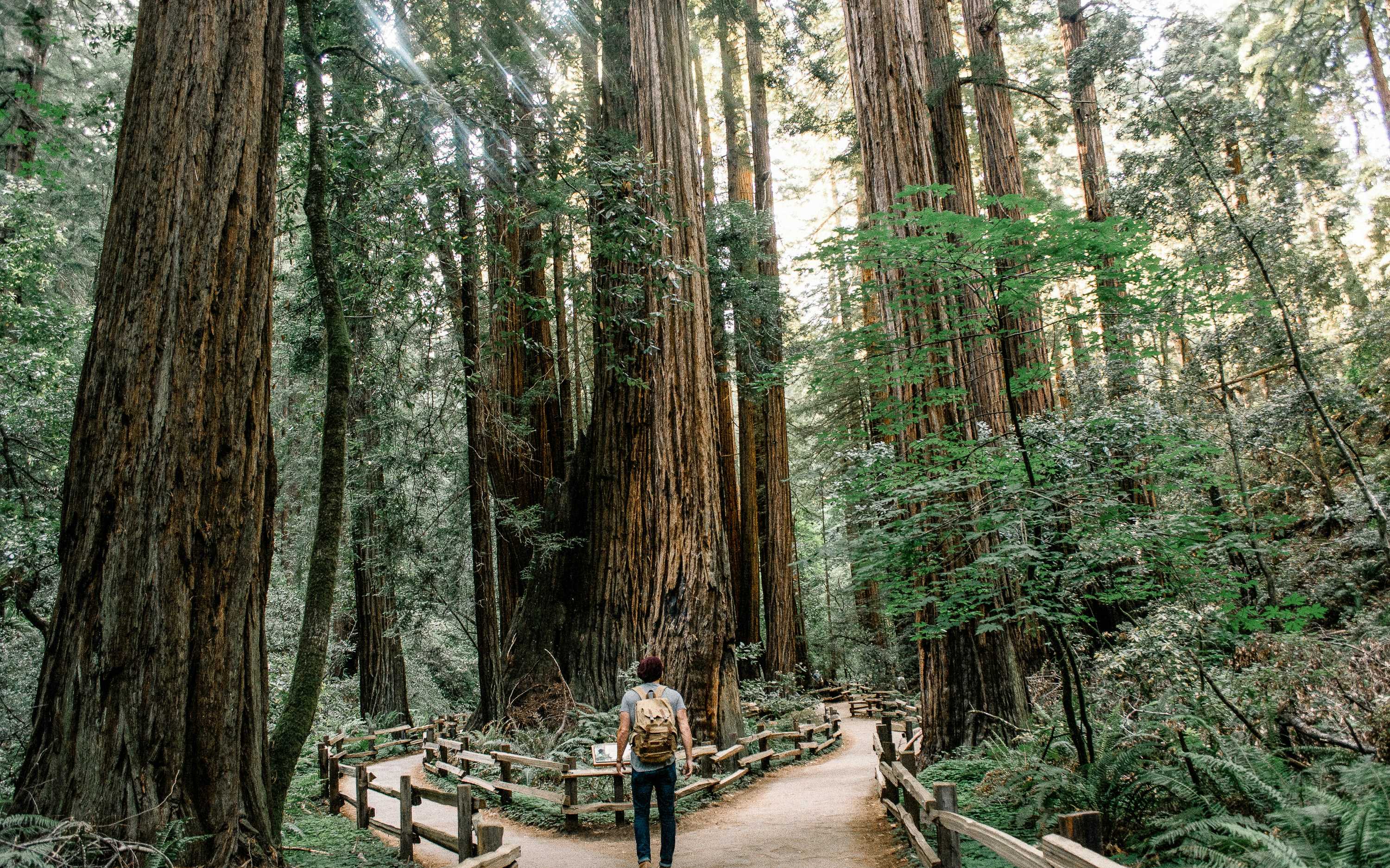 * 무어 우즈 국립 기념지(Muir Woods National Monument)의 우뚝 솟은 해안 레드우드 숲에서 자연의 아름다움에 흠뻑 빠져보세요.
