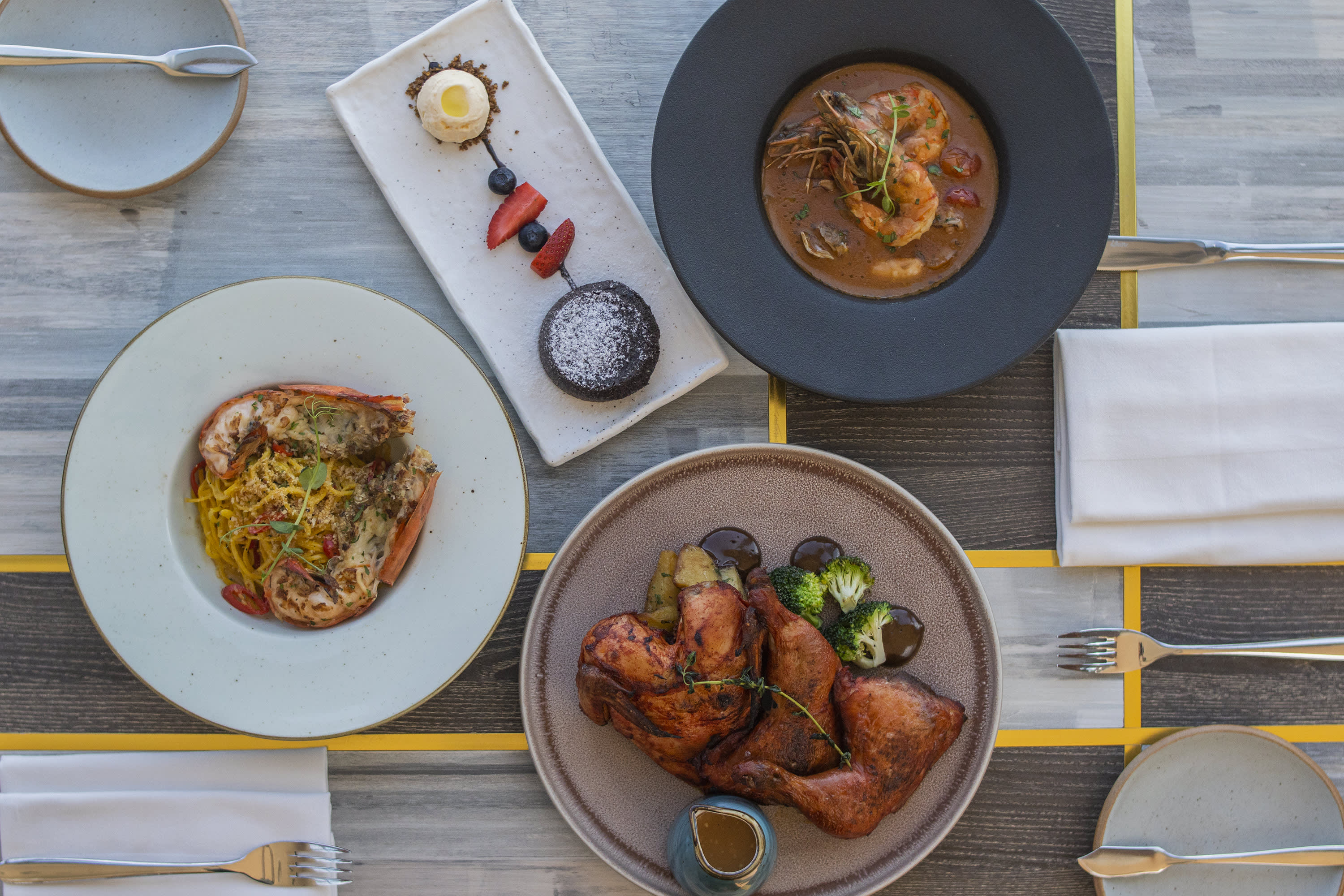 * 잊을 수 없는 경험을 위해 숨 막힐 듯한 파노라마 전망이 보이는 가장 높은 지점에서 식사하세요 * 세련된 분위기에서 고급 재료로 만든 정통 이탈리아 요리를 맛보세요 * 전통 요리에 창의적인 변형을 준 현대적이고 무슬림 친화적인 중국 요리를 경험하세요 * 신선하게 구운 장인 커피, 꽃 테마 페이스트리, 고품질 재료로 만든 풍성한 브런치를 즐기세요