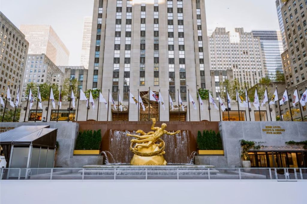 • 뉴욕을 상징하는 록펠러 센터 크리스마스 트리 아래에서 얼음을 가로질러 보세요.