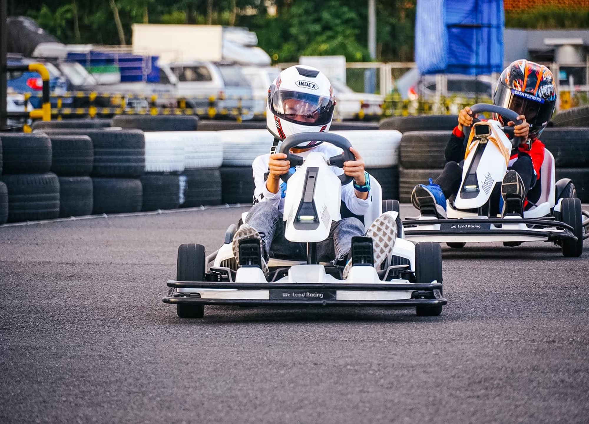 전기 카트 특유의 부드러운 가속과 조용한 주행으로, 매연과 소음 걱정 없이 쾌적하게 레이스를 즐길 수 있으며, 주행 전 제공되는 간단한 안전 교육으로 처음인 분들도 부담 없이 참여할 수 있습니다.