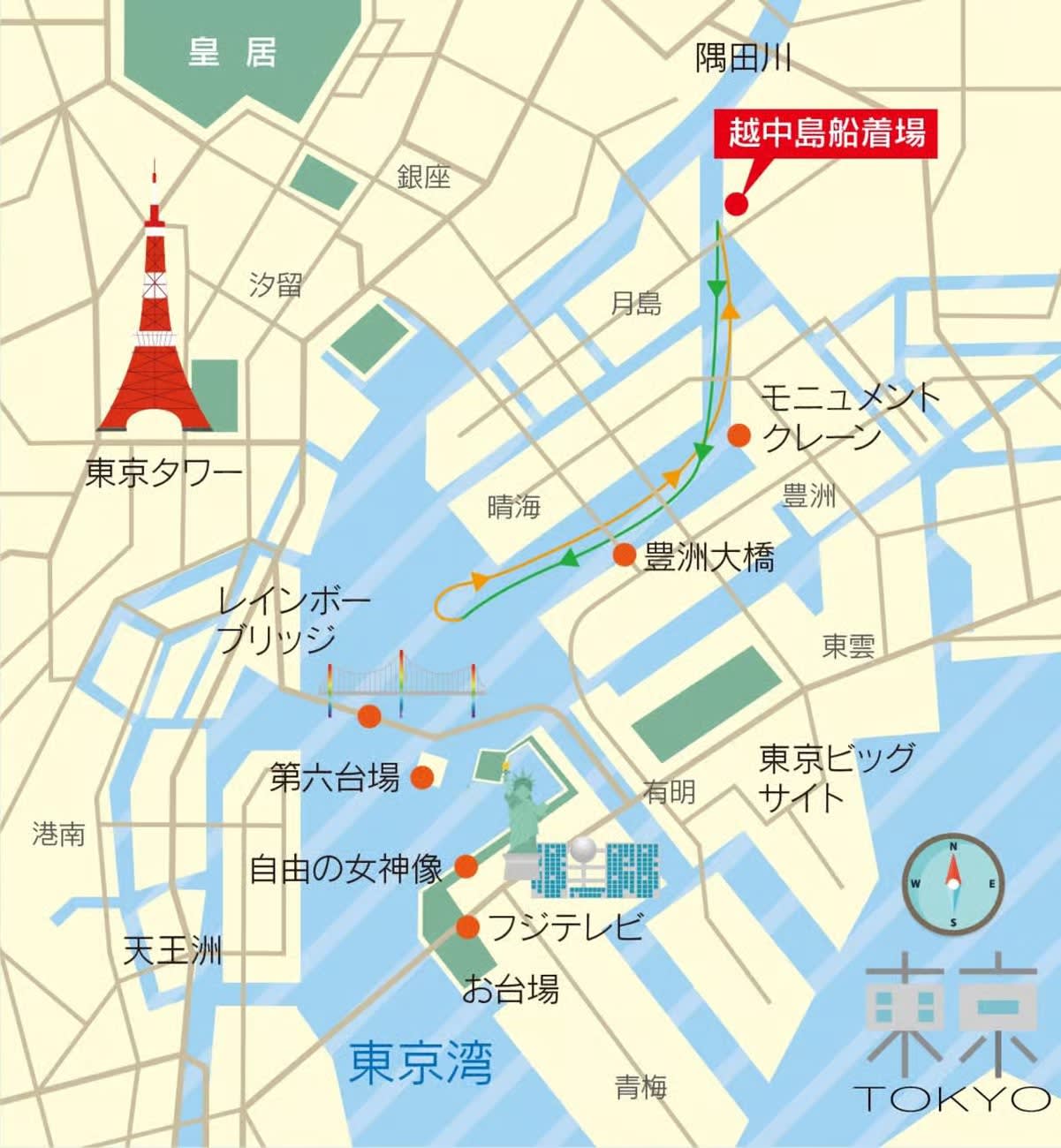 * 도쿄 수역을 따라 유람선이 천천히 운항하며 현대 도시 경관과 고요한 수면 사이에서 독특한 일본 문화 분위기를 경험합니다.