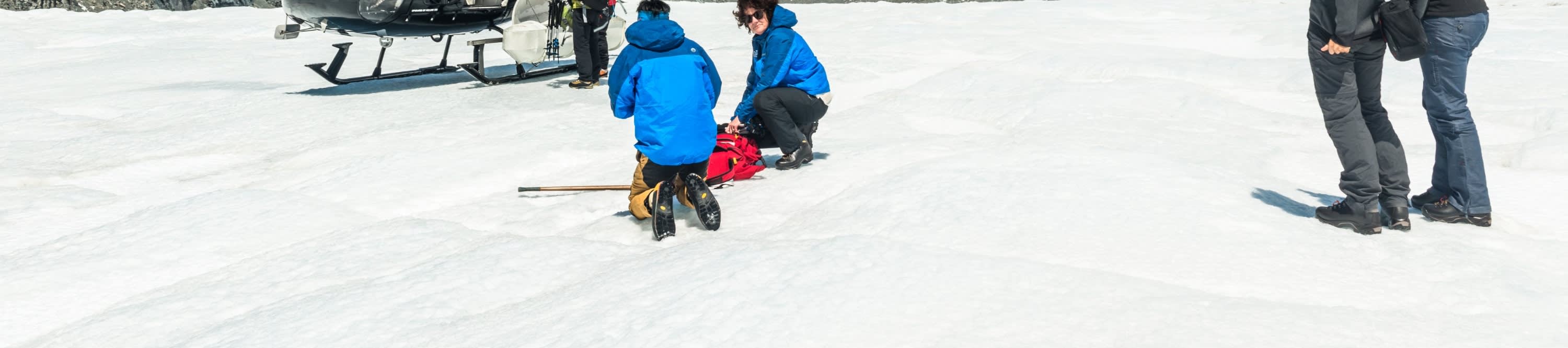 * 외딴 빙하 지역의 드롭 지점으로 헬리콥터를 타고 이동합니다.