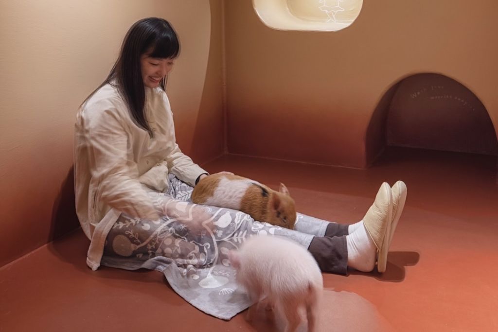 미니 돼지를 자유롭게 만지고 먹이 주기 체험도 즐기세요!