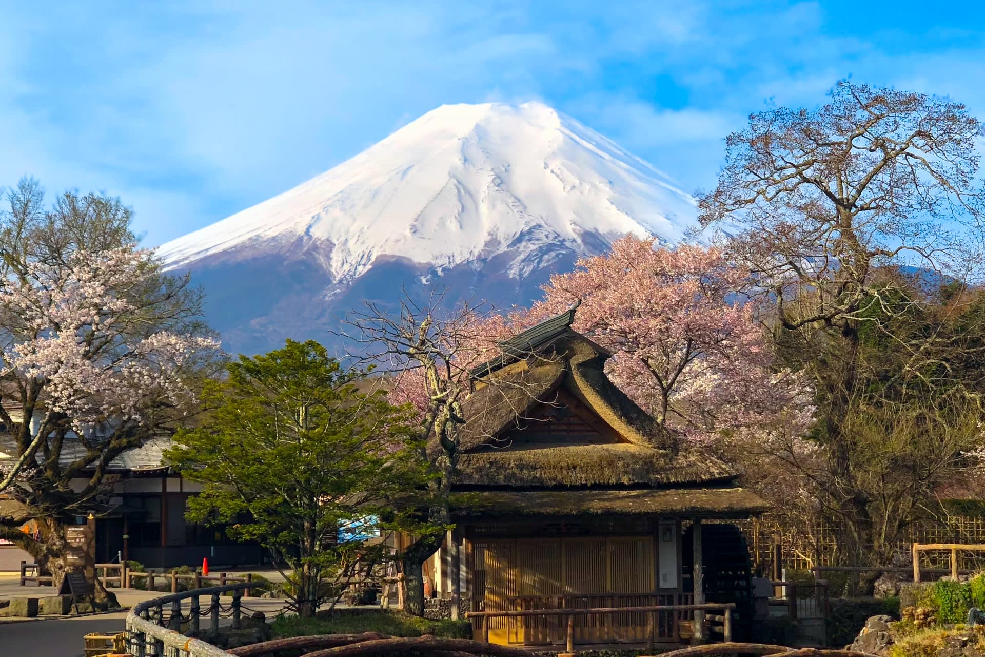 * 가와구치 호수 북쪽 기슭과 신낫쇼 강을 따라 피어 있는 벚나무는 봄에 벚꽃을 즐길 수 있는 가장 아름다운 장소 중 하나이며, 후지산의 멋진 경치를 선사합니다.
