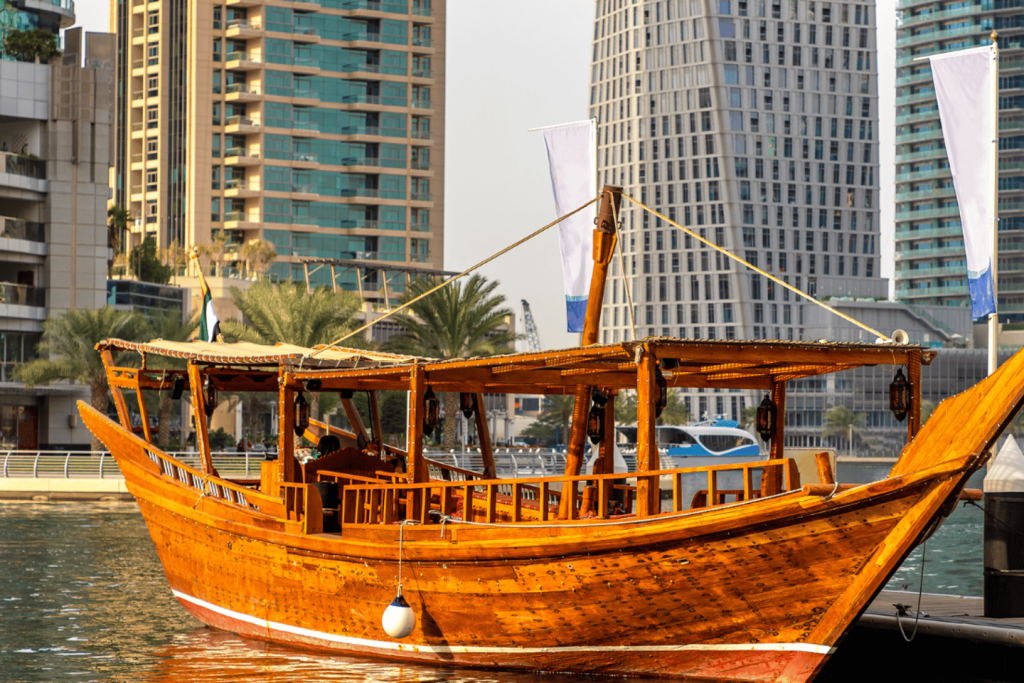 아브라 보트를 타고 색다른 시각으로 도시를 감상해 보세요.