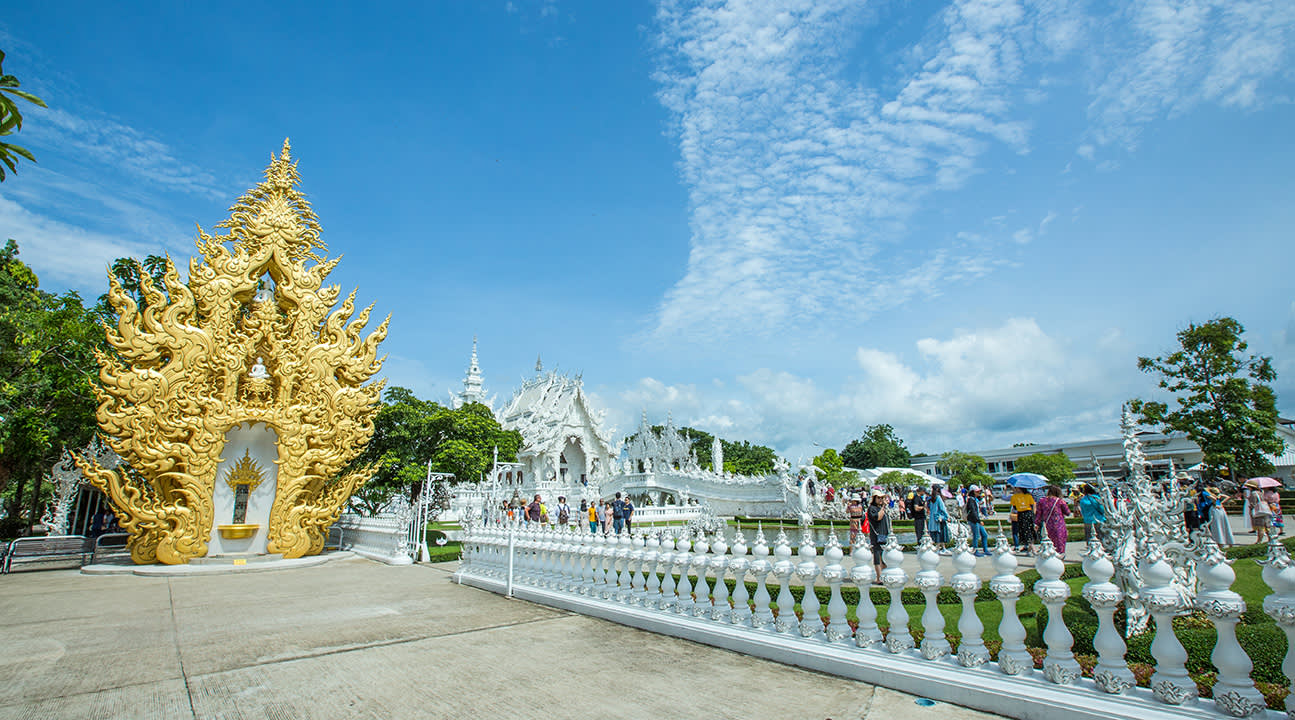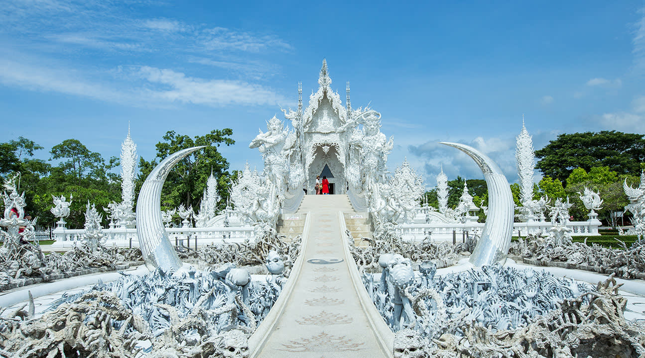 * 태국 국가 예술가 Chalermchai Kositpipat이 디자인한 아름답고 기괴하며 복잡한 왓 롱 쿤 (백색 사원)을 방문하세요.