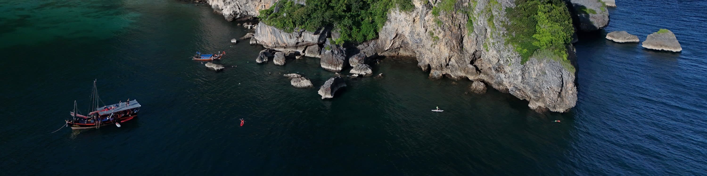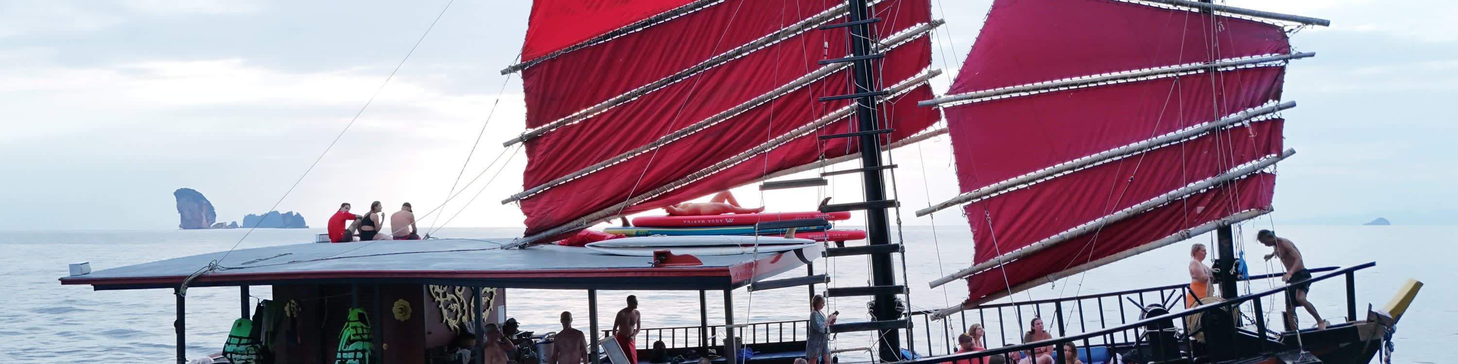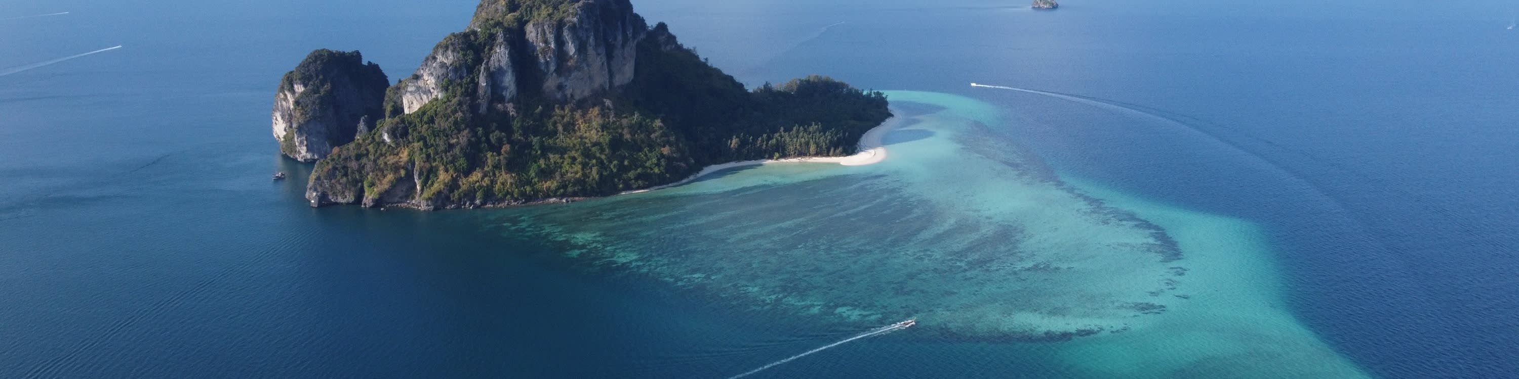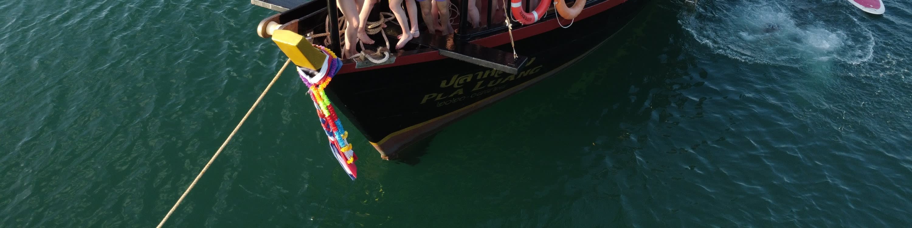 안다만해에서 잊지 못할 하루를 보낼 수 있는 4 Island 선셋 크루즈에 참여하세요. 코 야 와 삼(Koh Ya Wa Sam)의 활기 넘치는 산호초에서 스노클링을 즐긴 후, 치킨 아일랜드(Chicken Island)로 이동하여 수영과 해변 방문을 즐겨보세요. 이곳에서 투명한 바닷물에서 패들보드나 카약을 탈 수도 있습니다. 다음으로, 태양이 수평선 아래로 지면서 완벽한 사진 배경을 만들어내는 꼬다 섬(Poda Island)의 하얀 모래사장에서 휴식을 취하세요. 밤이 되면 라일레이(Railay)의 프라낭 동굴 해변(Phra Nang Cave Beach)으로 이동하여 물속에서 별처럼 빛나는 생물 발광 플랑크톤 사이에서 매혹적인 수영을 즐겨보세요. 이 크루즈는 신나는 음악, 모험, 휴식, 그리고 멋진 풍경이 완벽하게 조화를 이루고 있습니다.