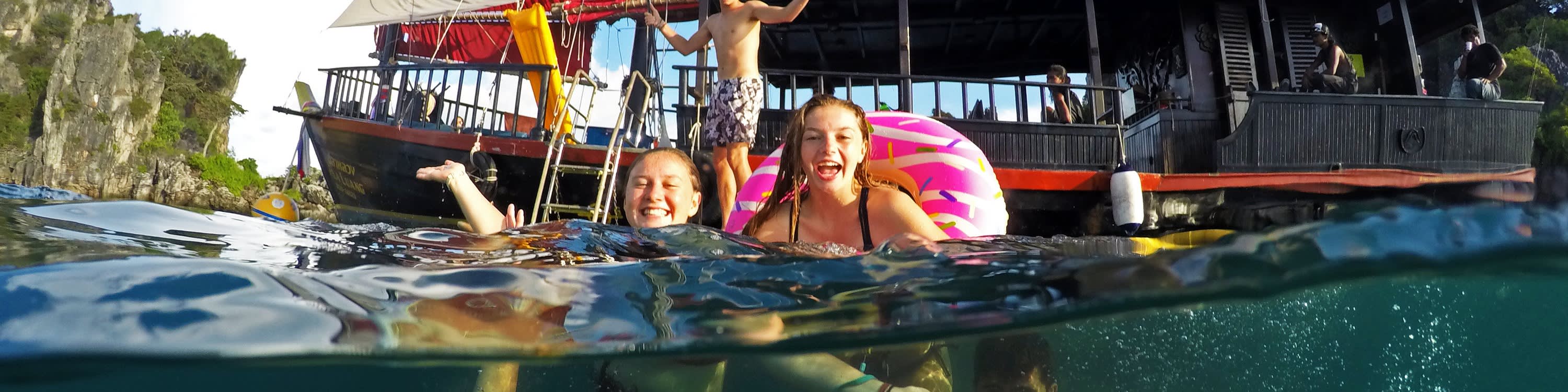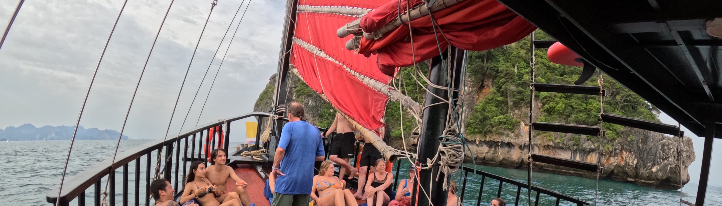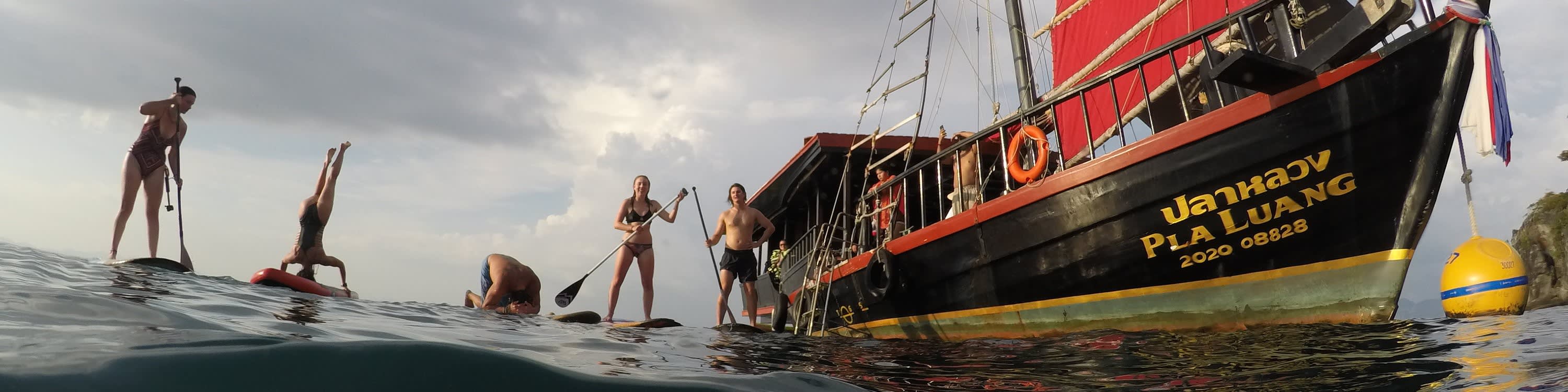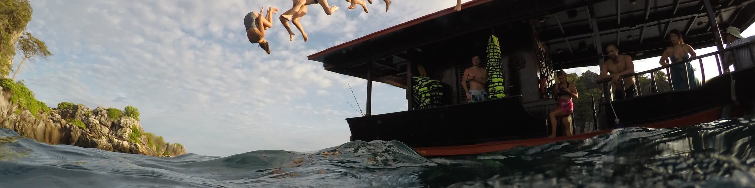 안다만해에서 잊지 못할 하루를 보낼 수 있는 4 Island 선셋 크루즈에 참여하세요. 코 야 와 삼(Koh Ya Wa Sam)의 활기 넘치는 산호초에서 스노클링을 즐긴 후, 치킨 아일랜드(Chicken Island)로 이동하여 수영과 해변 방문을 즐겨보세요. 이곳에서 투명한 바닷물에서 패들보드나 카약을 탈 수도 있습니다. 다음으로, 태양이 수평선 아래로 지면서 완벽한 사진 배경을 만들어내는 꼬다 섬(Poda Island)의 하얀 모래사장에서 휴식을 취하세요. 밤이 되면 라일레이(Railay)의 프라낭 동굴 해변(Phra Nang Cave Beach)으로 이동하여 물속에서 별처럼 빛나는 생물 발광 플랑크톤 사이에서 매혹적인 수영을 즐겨보세요. 이 크루즈는 신나는 음악, 모험, 휴식, 그리고 멋진 풍경이 완벽하게 조화를 이루고 있습니다.