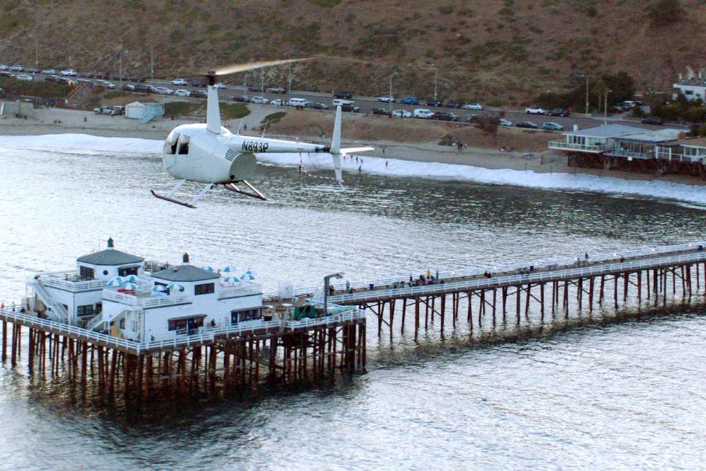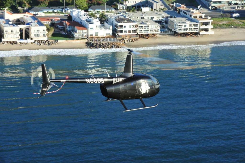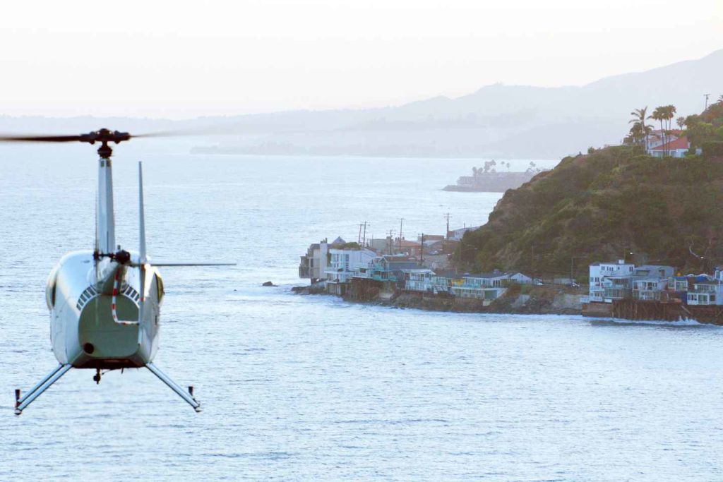 버뱅크의 밥 호프 공항에서 이륙하여 남쪽으로 향하여 산타모니카 산맥 상공을 비행한 후 퍼시픽 팰리세이즈의 멋진 해안가 주택으로 내려가세요.