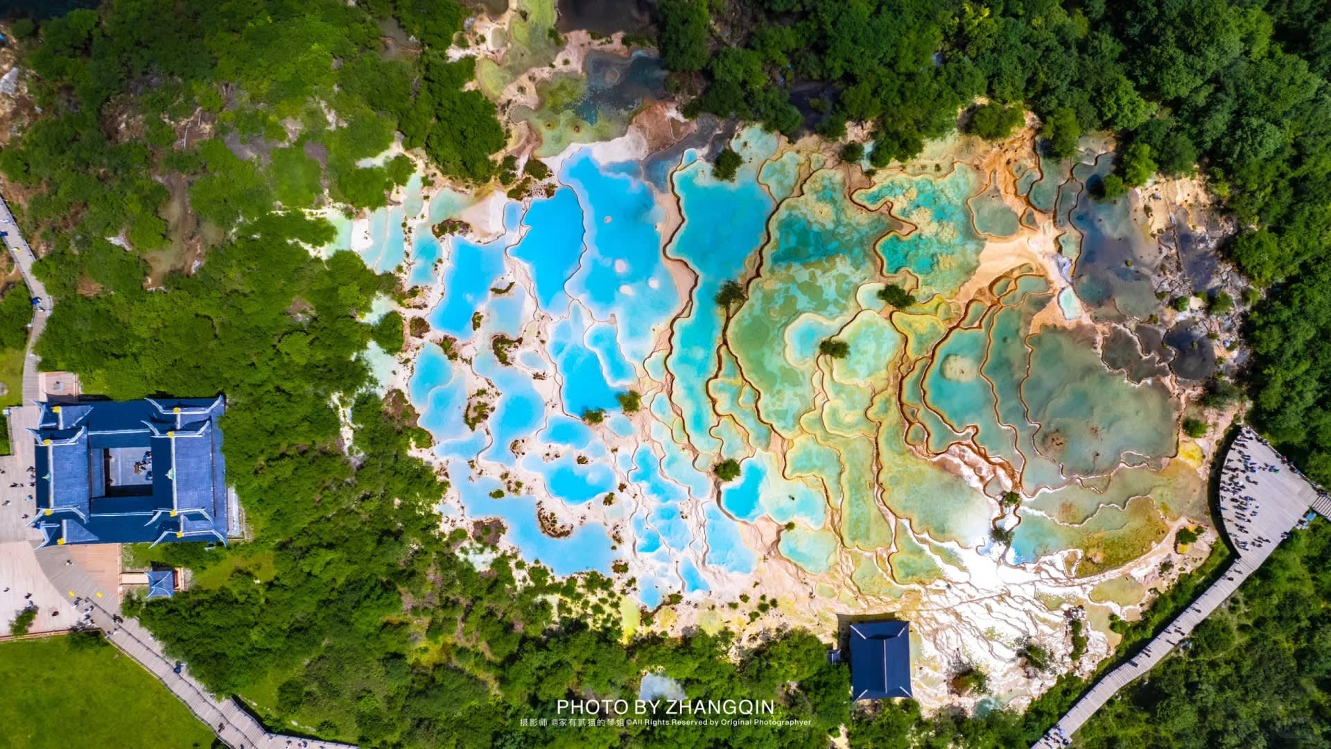 * 오채지: 석회화 연못은 마치 신의 팔레트🎨와 같습니다.