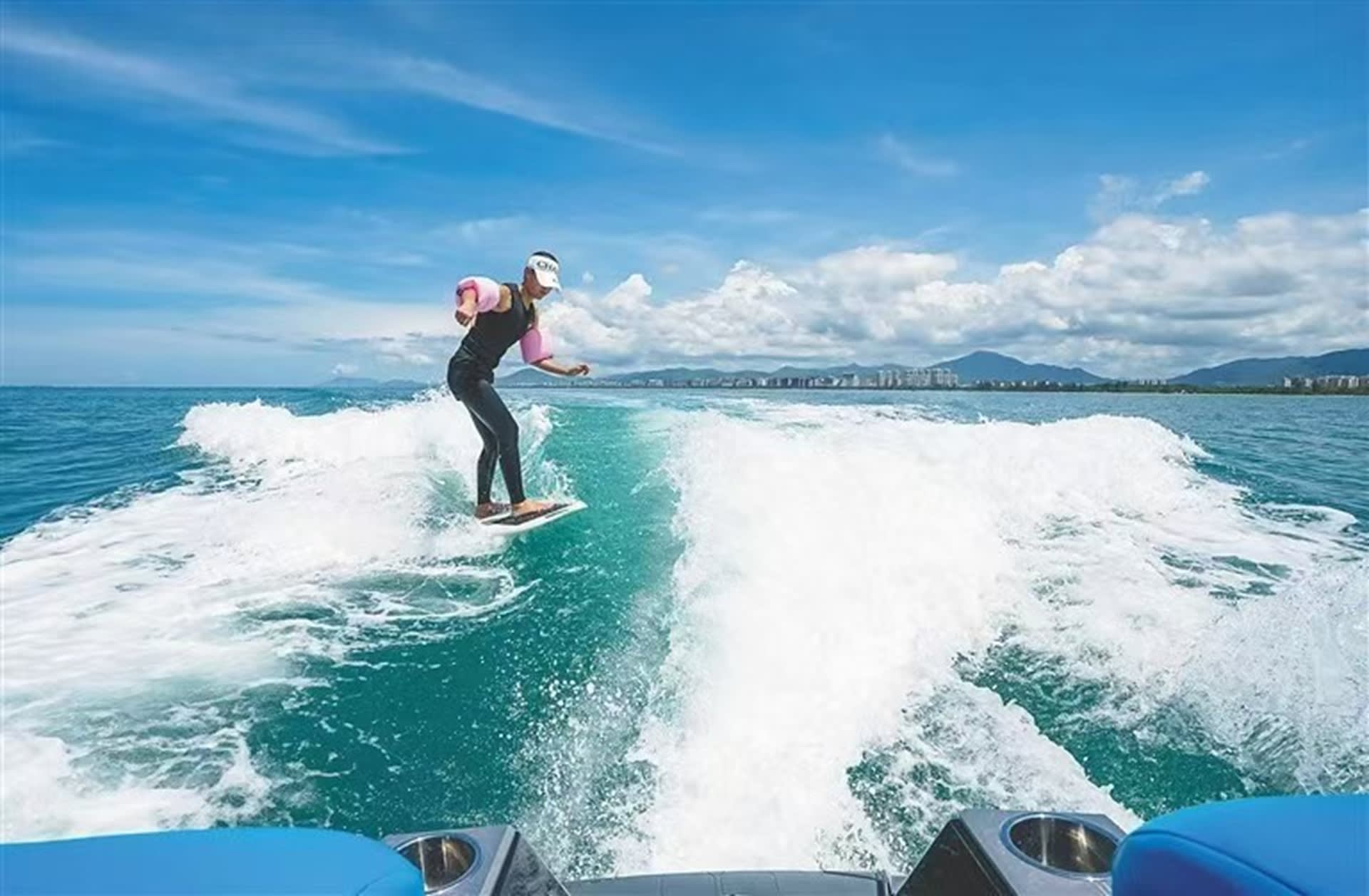 * 기초가 없어도 즐길 수 있는 웨이크 서핑은 우아함과 역동성의 결합입니다! 쾌속정의 웨이크를 이용하여 자연 파도를 기다릴 필요 없이 전문 코치가 직접 서서 타는 방법을 가르쳐주므로, 아롱베이의 잔잔한 해면에서 파도 위를 가볍게 미끄러지는 느낌을 경험하고 코치가 찍어주는 파도 위 멋진 사진도 얻을 수 있습니다.