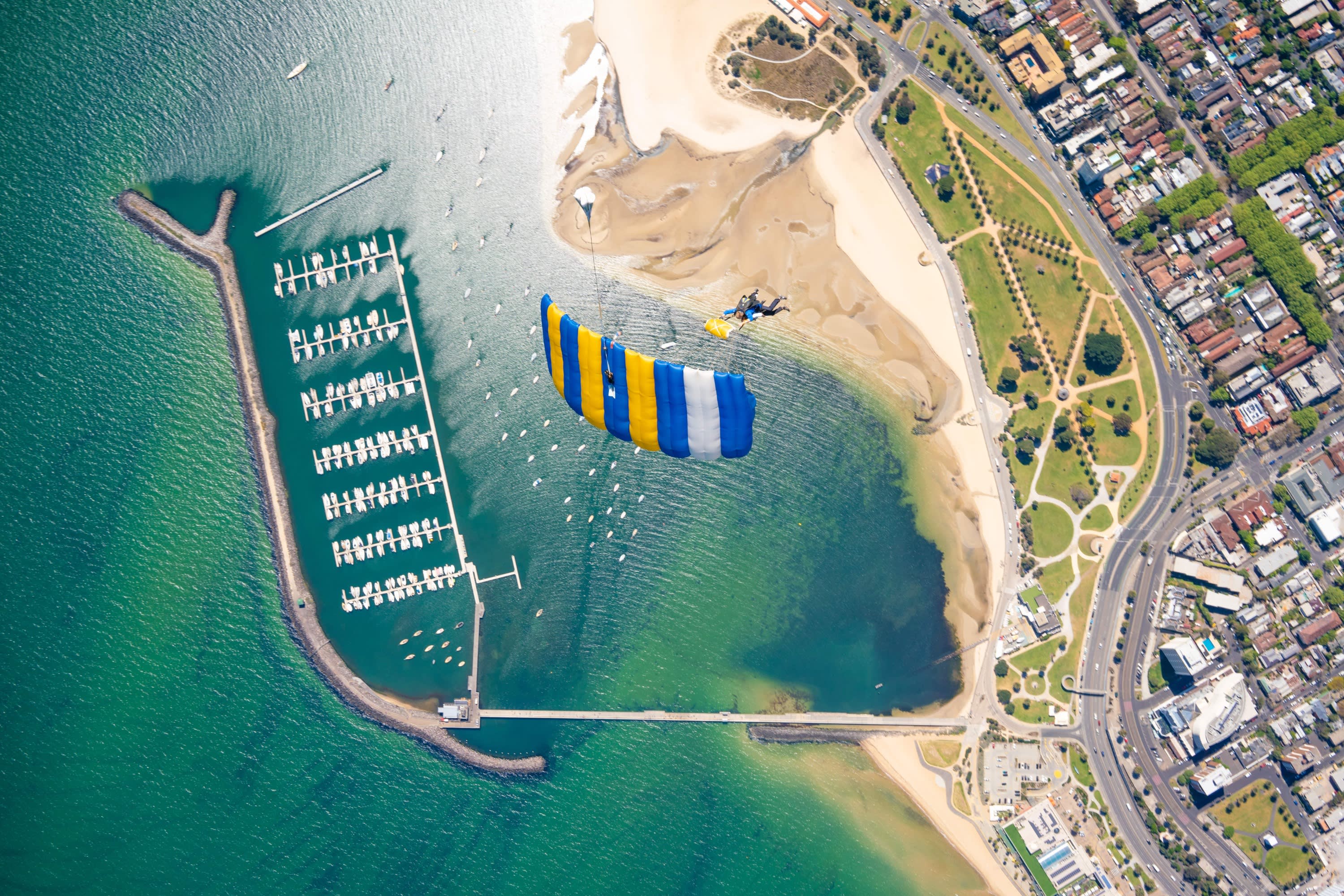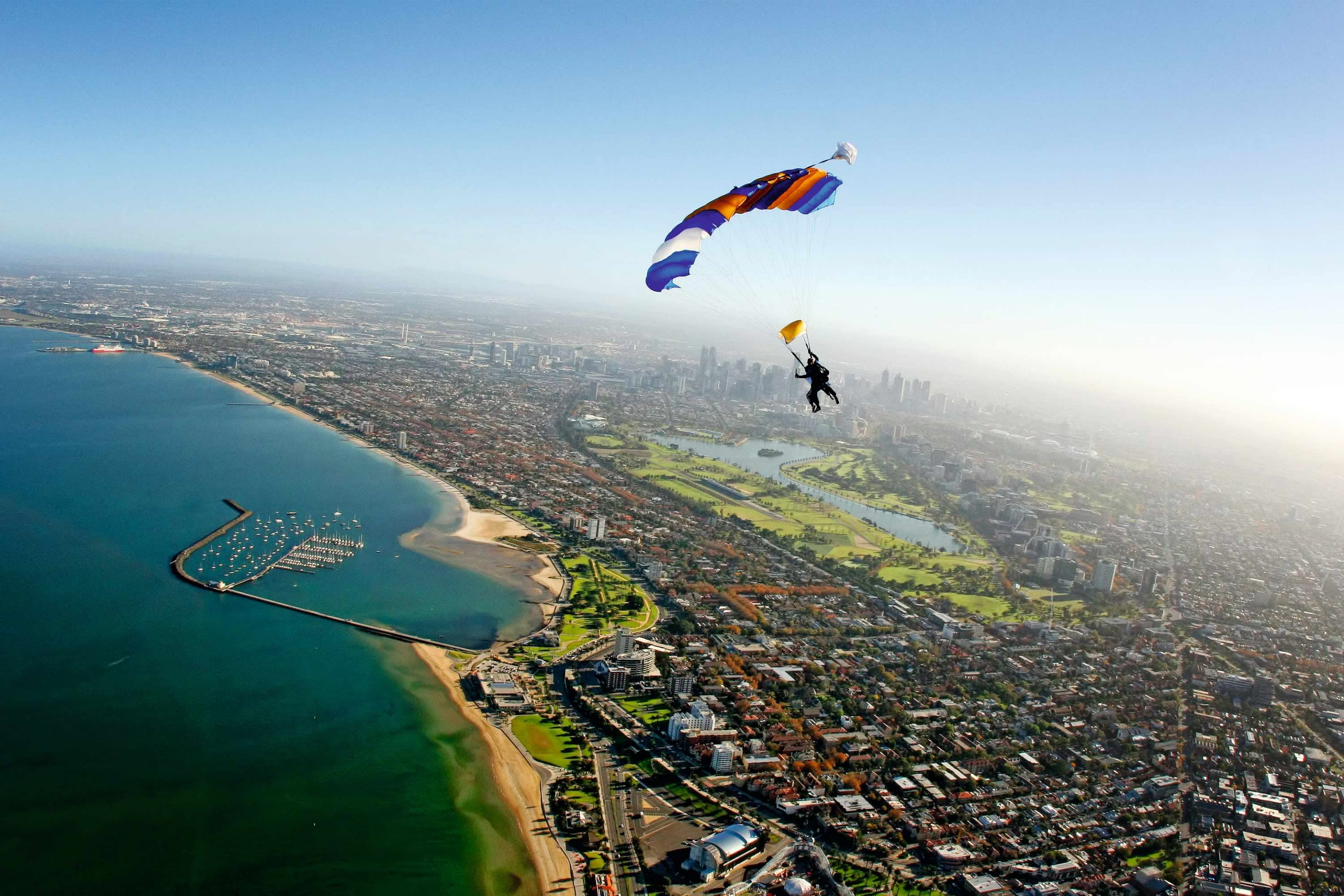 * 세인트 킬다에서 낙하해 멜버른 중심업무지구 상공을 날 수 있습니다.