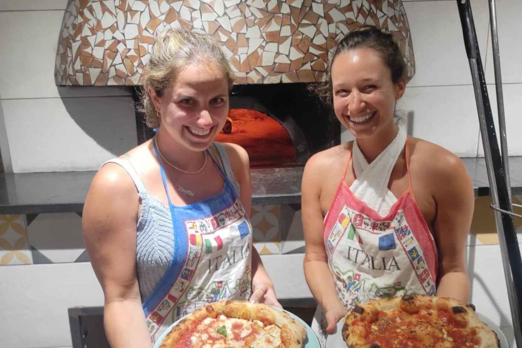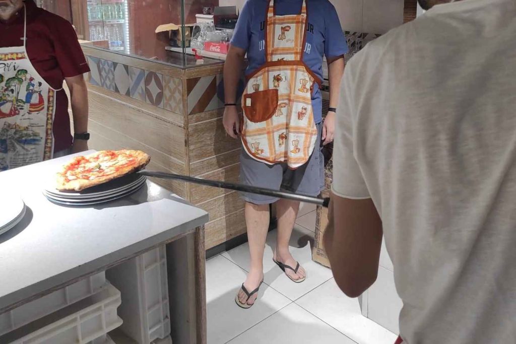 피자가 준비되면 오븐에서 조리되며, 특별한 도구와 전문가의 손길 덕분에 정통 나폴리식 피자를 경험할 수 있습니다. 피자가 완벽하게 익으면 원하는 음료(와인 또는 맥주 한 잔 포함)와 함께 즐기며 정통 나폴리 피자의 맛을 음미할 수 있습니다.