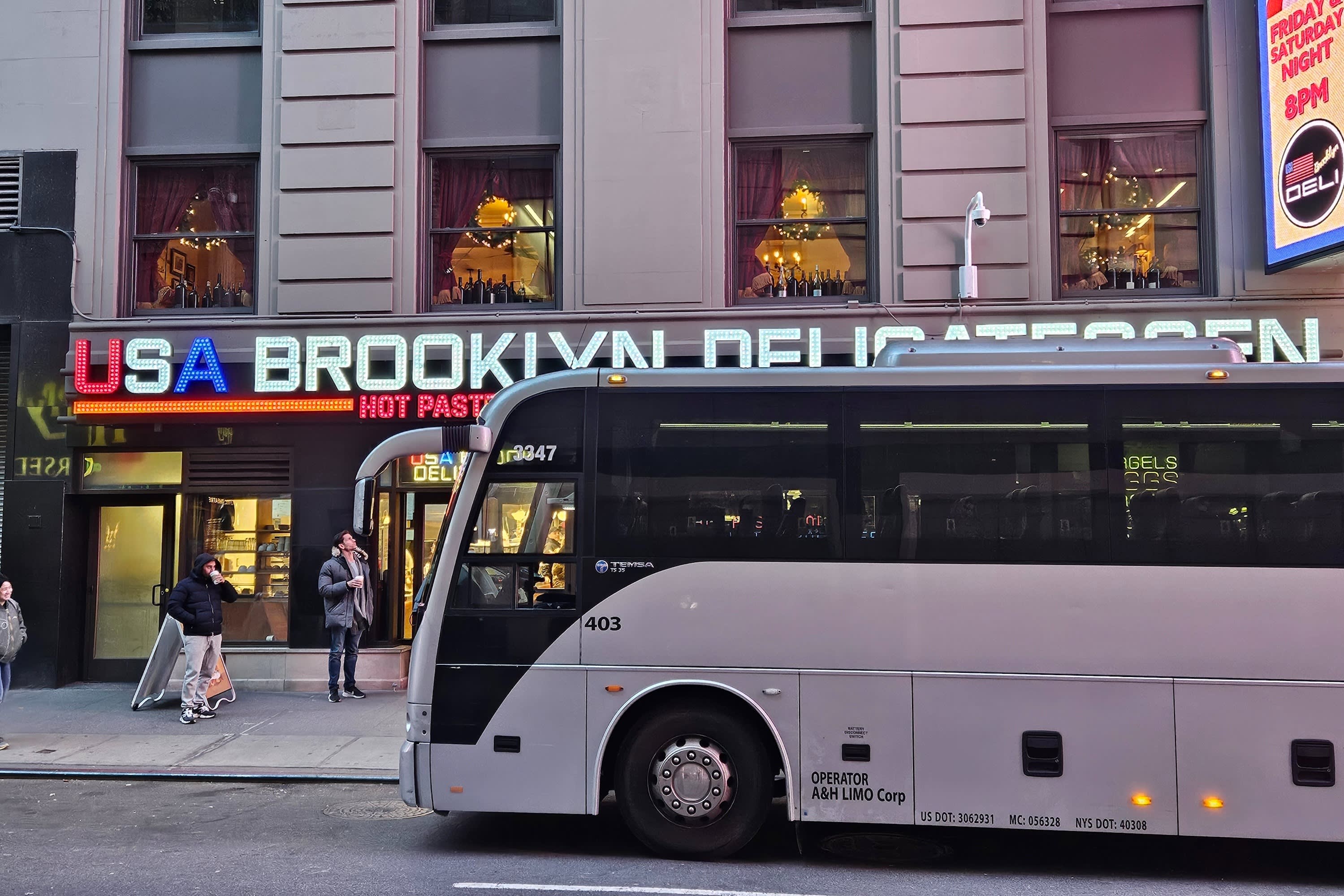* 타임스 스퀘어에서 뉴욕의 다이커 하이츠 홀리데이 워킹 투어까지 고급 버스로 익스프레스 교통을 즐기세요