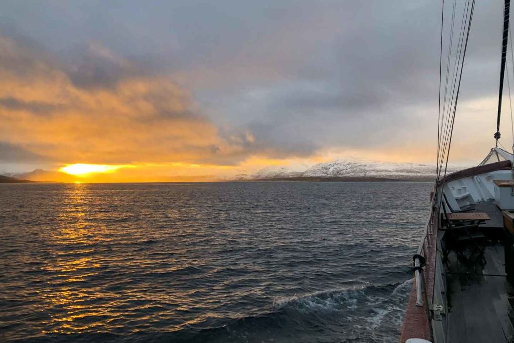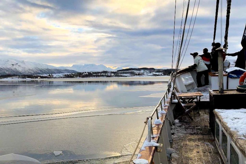 트롬쇠에서 출발하는 북극 피오르드 크루즈를 타고 북극의 매혹적인 경이로움을 발견하세요. 33미터 길이의 맞춤형 세일링 요트를 타고 숨막히는 피오르드와 우뚝 솟은 눈 덮인 산, 외딴 마을의 세계에 빠져보세요. 독수리, 돌고래, 물개, 다양한 조류 등 야생동물을 관찰할 수 있습니다. 현지 순록 수프 점심을 맛보세요. 채식 옵션을 원하시는 경우 최소 24시간 전에 알려주시기 바랍니다.