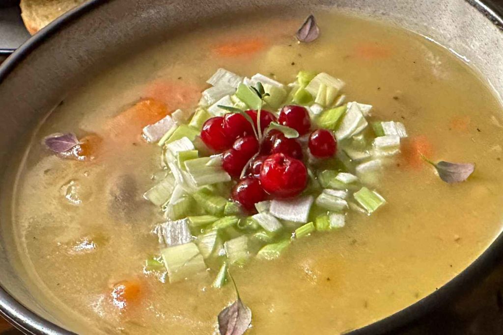 점심 식사로 현지 순록 스튜를 즐겨보세요.