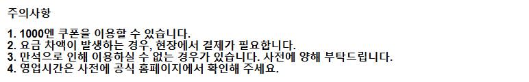 - 이용일 부터 7일간 유효 하지만, 구매일로 부터 270일 이후 이용 불가하니 주의 바랍니다.