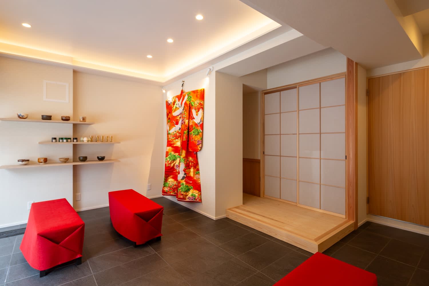 * 니지리구치: 다실에는 니지리구치(손님이 바깥 세상을 뒤로하고 다도의 중심으로 들어갈 수 있도록 초대하는 작은 출입구)가 있습니다.