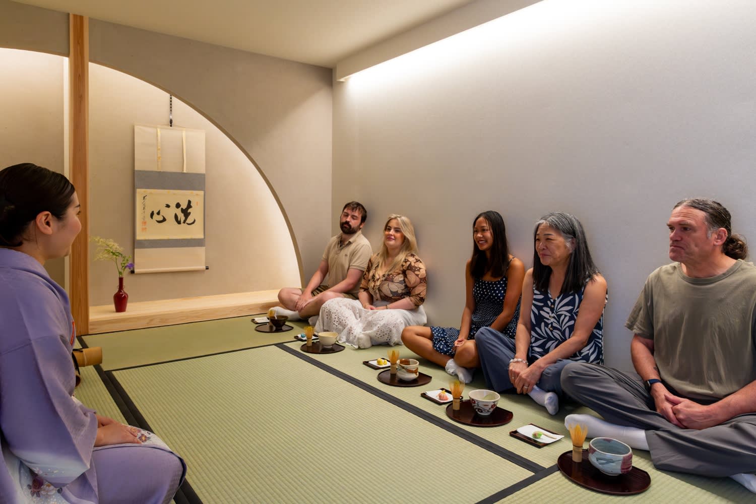 • 다도는 말차를 대접하는 일본의 전통적인 의식으로, 모든 동작, 도구, 공간이 마음 챙김과 순간에 대한 존중을 장려합니다. 다도의 역사에 대해 배우는 것으로 시작합니다. 그런 다음, 주인이 준비한 말차와 다과를 즐기고 직접 말차를 만들어 보세요.
