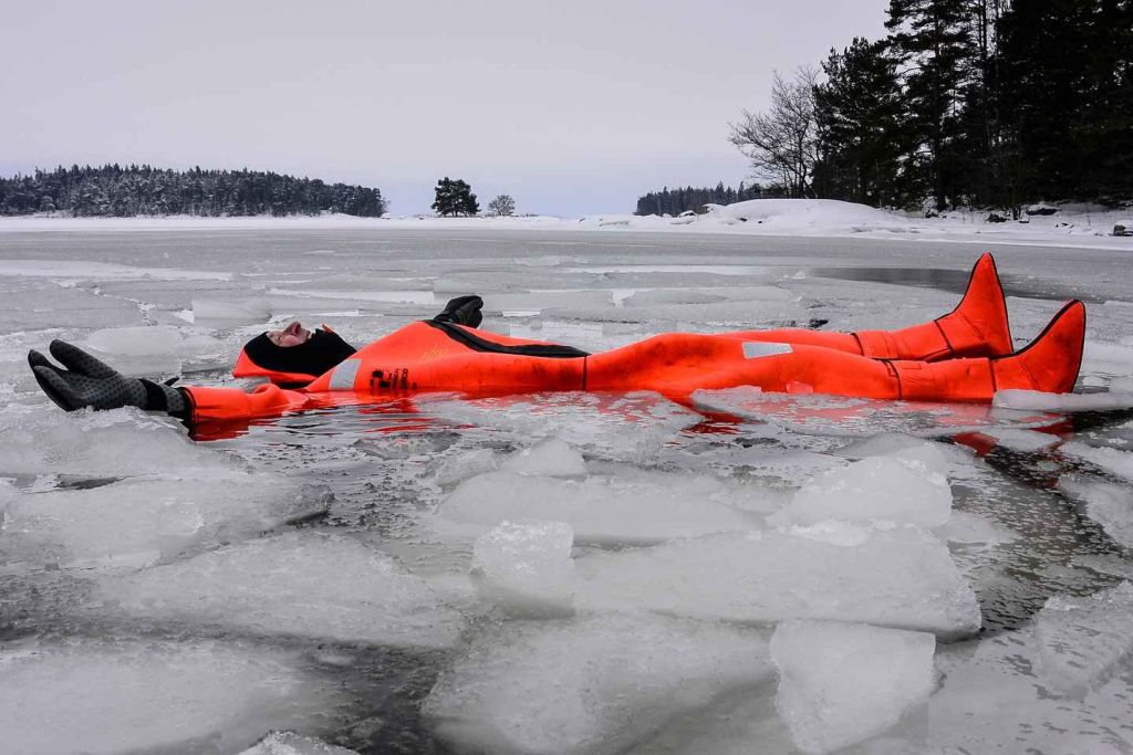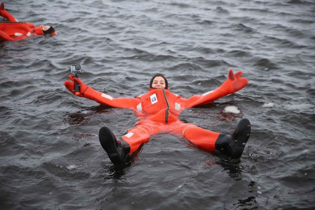 네오프렌 소재의 구명 슈트를 입고 물속에서 완전히 따뜻하고 건조한 상태를 느껴보세요. 자격을 갖춘 강사에게 해상 구조와 실제 생존 상황에서 해야 할 일에 대해 배우세요. 저체온증과 겨울철 수영의 장점에 대해 알아보세요.