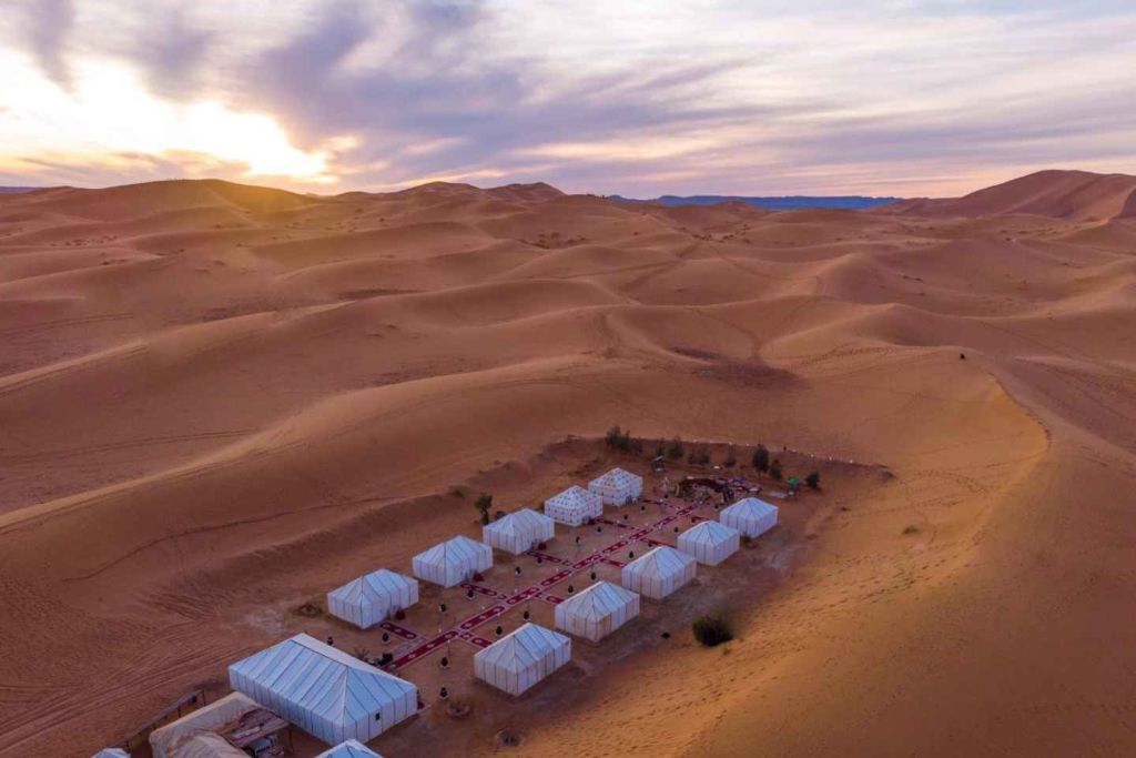 아침 식사 후, 1000 카스바로 가는 길을 떠난 후, 웅장한 야자수 숲이 있는 팅그르를 방문합니다. 토드라 협곡에서 가장 용감한 탐험가는 지상 300m 높이의 협곡을 따라 트레킹을 할 수 있습니다. 그런 다음 메르주가와 사하라 사막의 에르그 체비 모래 언덕으로 계속 이동합니다. 세계에서 가장 큰 사막에서 캠프가 있는 오아시스로 가는 동안 낙타 등에 올라 일몰을 감상할 수 있습니다. 유목민 텐트나 별빛 아래에서 밤을 보내며 현지인과 함께 음악을 연주하거나 노래를 부르며 진정한 유목민 문화에 푹 빠져보세요.