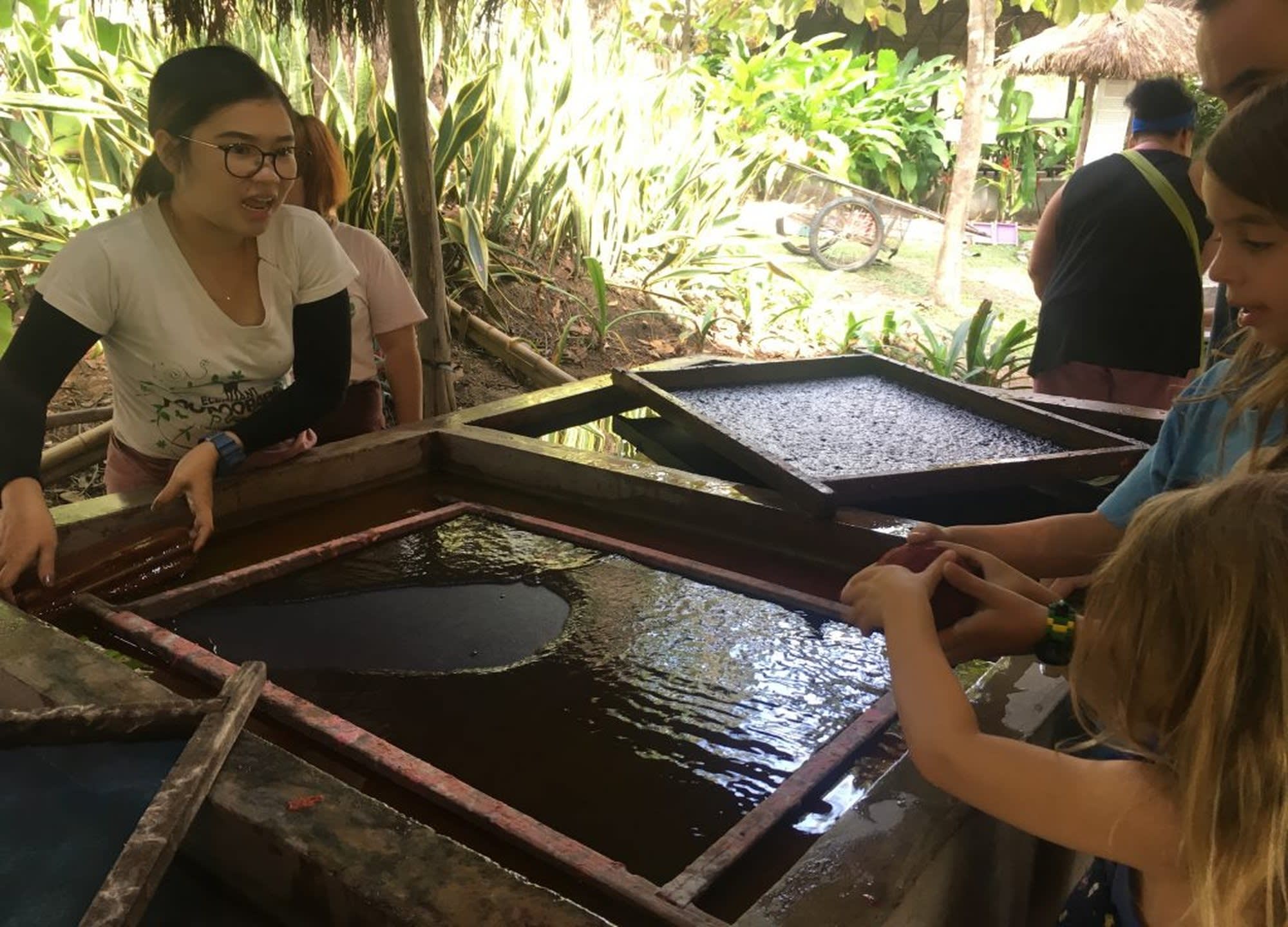 코끼리와 목욕을 마친 후 코끼리의 똥으로 종이를 만들고 약초를 만들 수 있는 투어입니다.