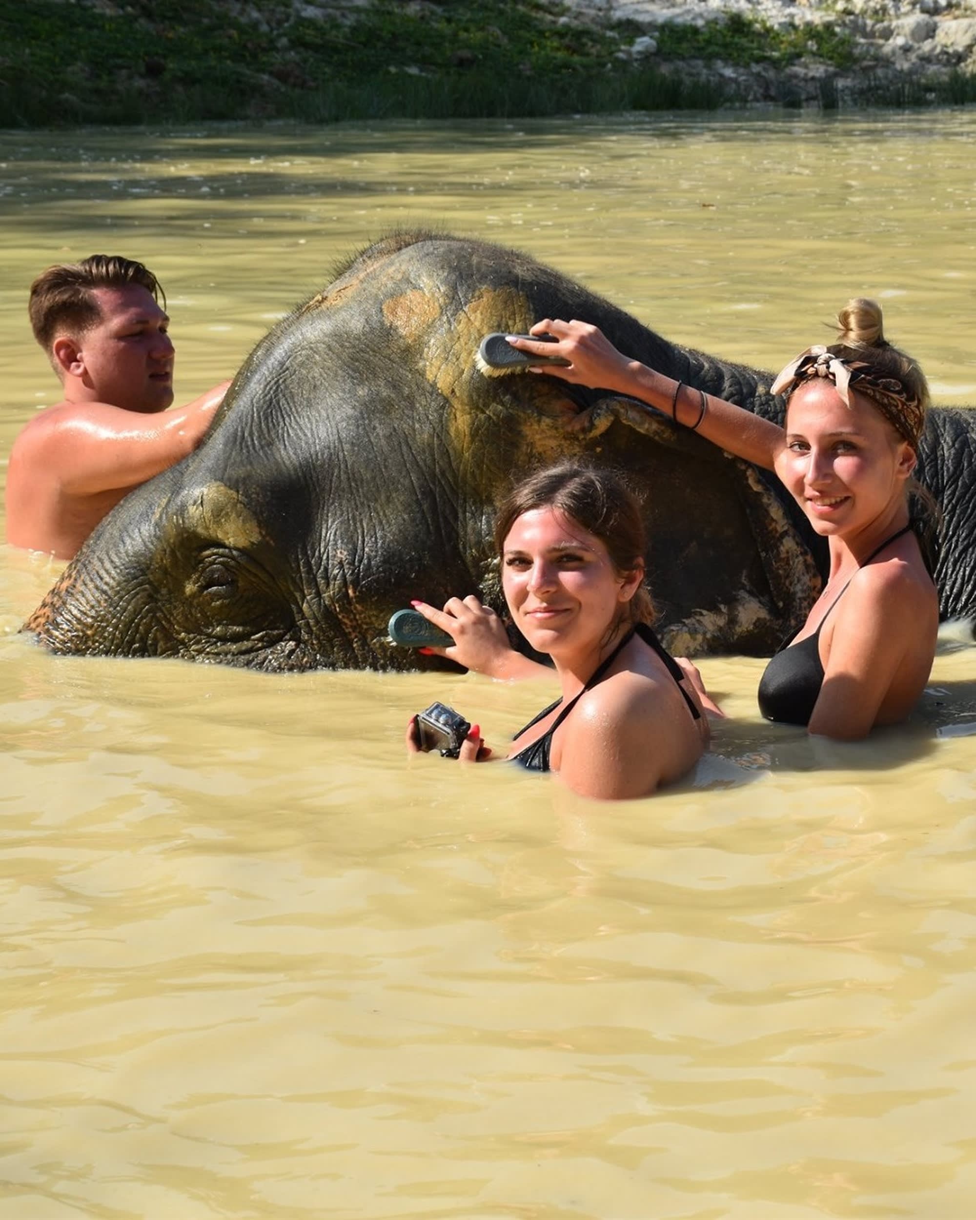 약 3 ~ 4시간 동안 진행되며, 코끼리와 함께 걷고, 먹이를 주고, 진흙 스파를 즐기며, 풀장에서 코끼리와 목욕을 합니다.