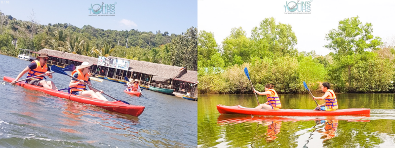 양쪽 강둑에 우거진 나무들이 강을 기댄 채 평화로운 꾸아칸 강의 멋진 경치를 즐기실 수 있어요.