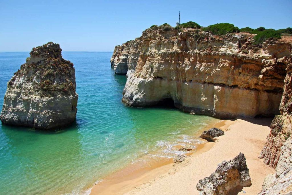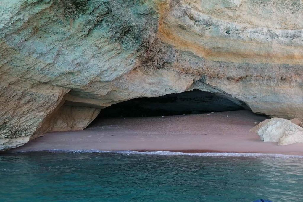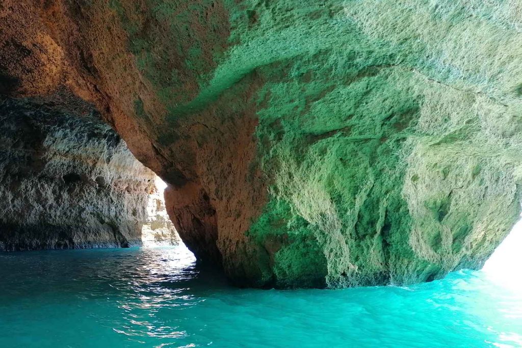 베나길 바다 동굴의 자연의 아름다움을 감상하세요. 이 필수 알가르브 유적지는 자연 침식에 의해 햇빛이 비치는 거대한 동굴이 형성되었습니다.