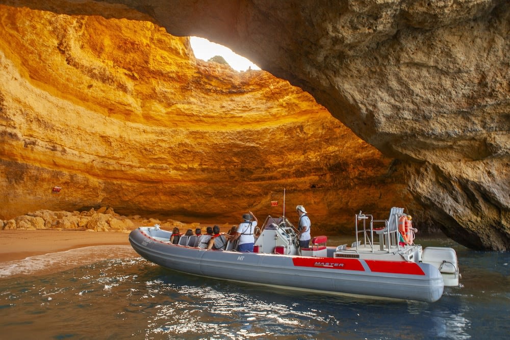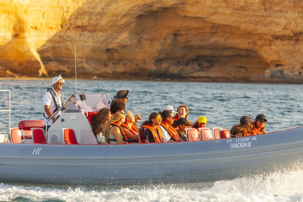 • 스피드 보트를 타고 짧은 어드벤처 투어로 유명한 베나길 바다 동굴을 방문하세요. 파도 위를 빠르게 질주하며 아름다운 알가르베 해안선의 경치를 감상하세요.