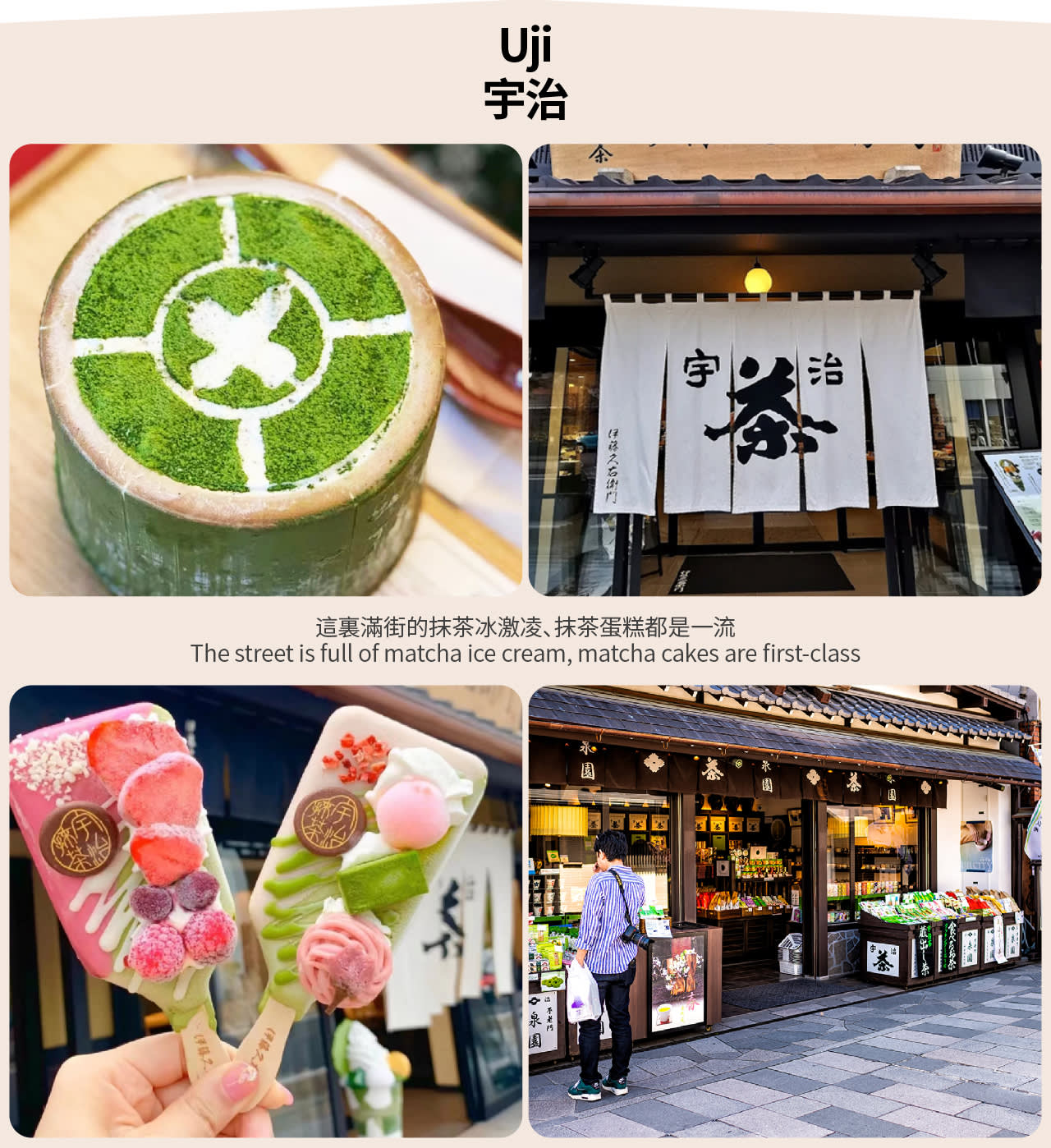 우지 말차 거리에서는 말차 아이스크림, 말차 케이크, 말차 라떼 등 다양한 말차 디저트와 음료를 맛보며 교토만의 독특한 말차 문화를 경험할 수 있습니다. 🍰🍦 잊을 수 없는 일일 투어가 될 것이며, 교토의 매력과 아름다움을 마음껏 느낄 수 있을 것입니다. 💕