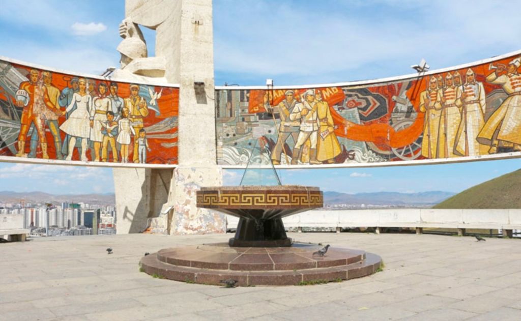 원형 벽화와 조각은 몽골-소련 간 역사적 협력 장면을 담고있어,