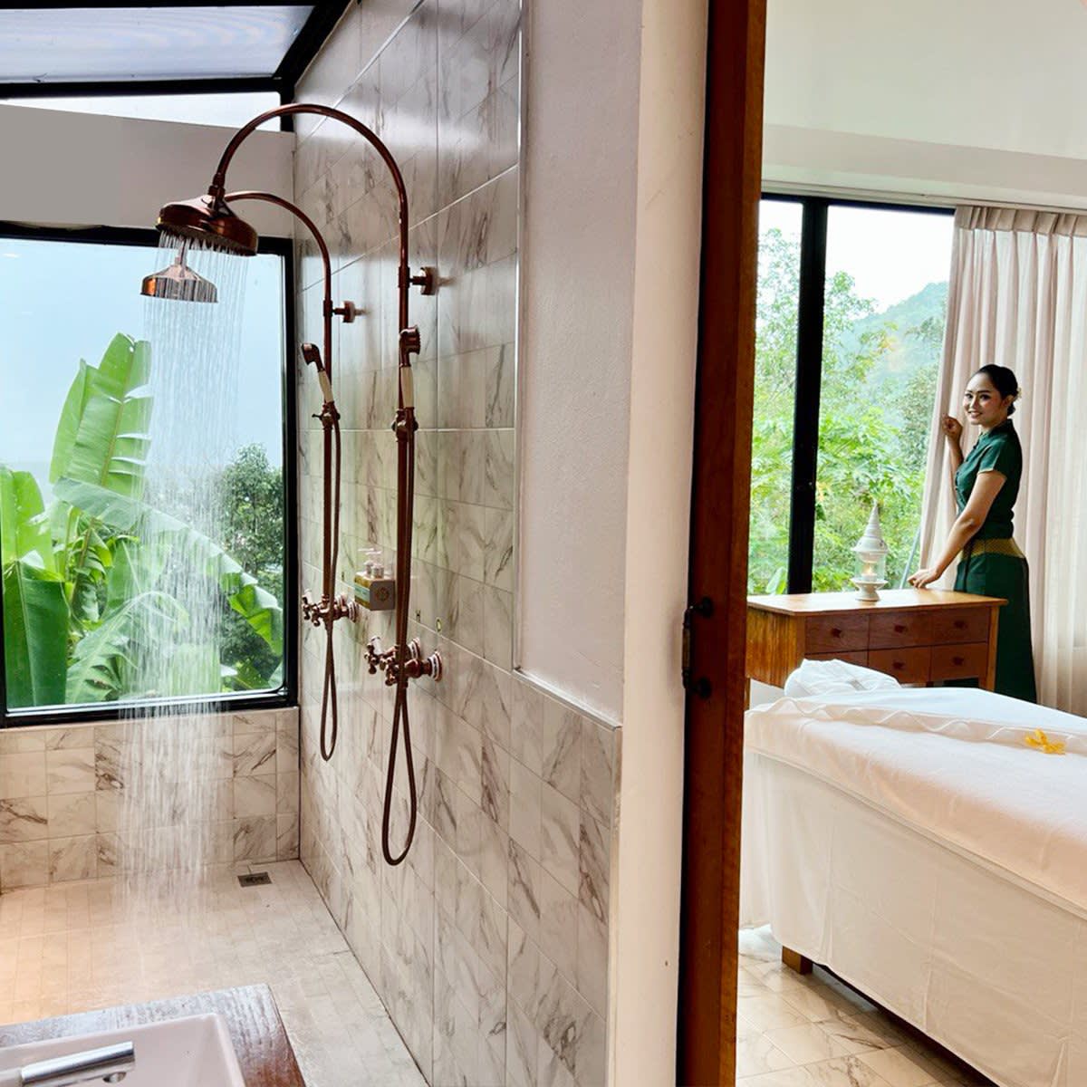 - 오션뷰와 정글, 산 전망이 어우러진 마사지룸 구성