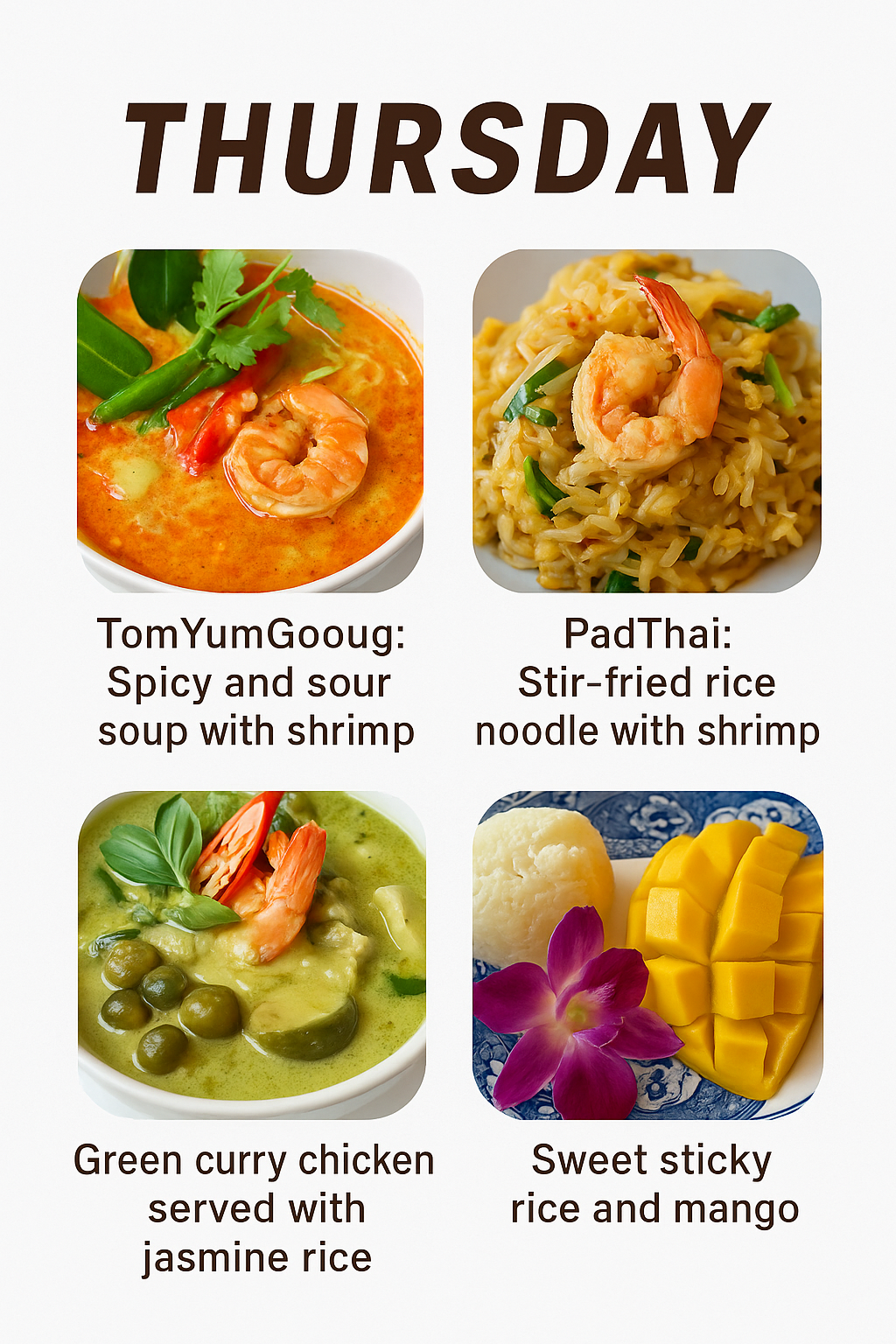 • 수쿰빗에 새로 생긴 쿠킹 클래스 입니다. 열정 넘치는 선생님들과 함께 맛있는 태국 음식을 만들어 볼 수 있습니다. 오전 오후 클래스 모두 마켓투어를 하며 직접 구매한 재료들로 요리를 해 보세요. 요일별 다른 메뉴로 진행하니 원하시는 음식으로 선택해서 배워보아요!
