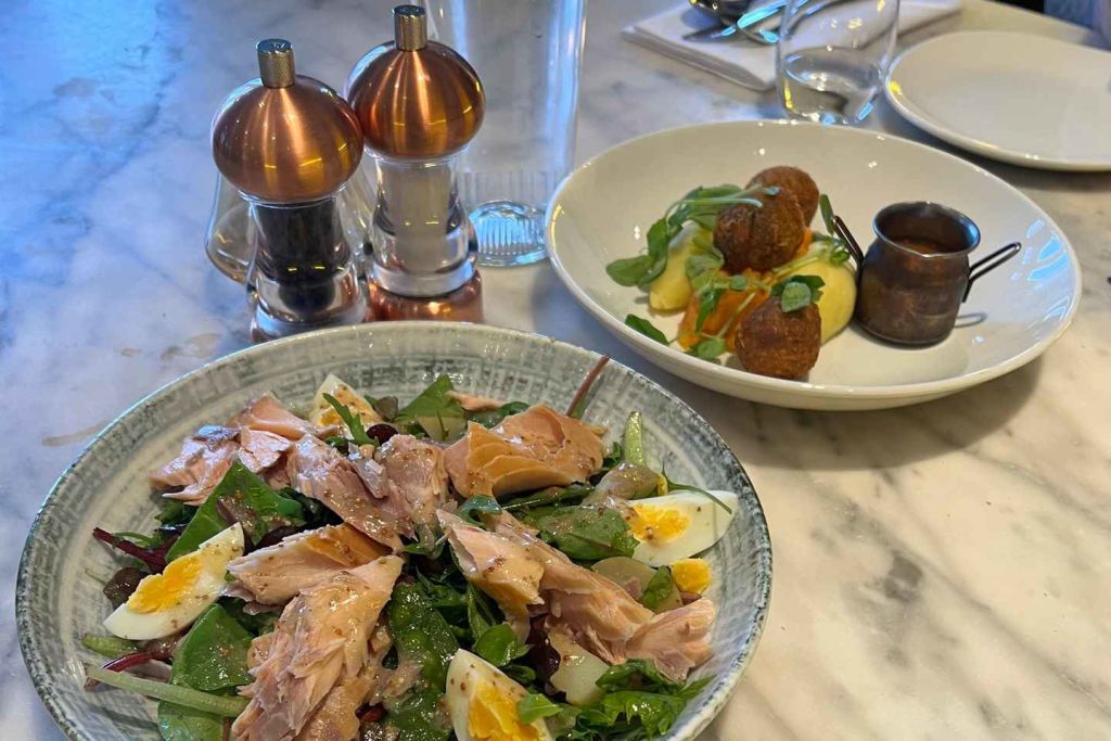 워킹 투어는 대조적인 세 곳의 레스토랑을 방문하며, 모두 걸어서 가까운 거리에 있습니다. 레스토랑 사이를 걷는 동안 조앤이 흥미로운 장소를 가리키고 이야기를 나누며 질문에 답하고 여행자를 돌봐줍니다. 조앤은 에든버러시 왕립 상인회의 시음 담당자로서 머천트 홀에서 열리는 고급 식사 경험에 대한 이야기를 나누는 것을 좋아합니다.