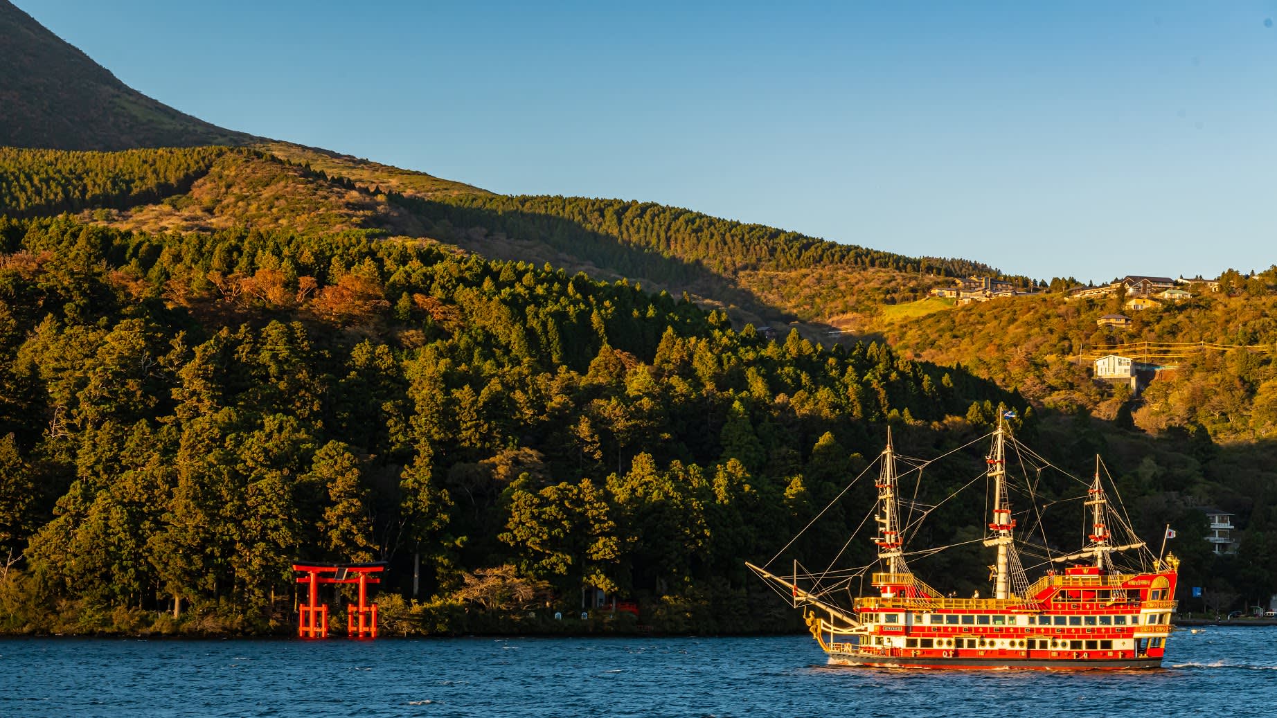 * 도겐다이코에서 하코네마치코/모토하코네코까지 약 25~40분 동안 유람선을 타고 하코네의 아름다운 풍경을 감상하세요. 선박 내부에는 3D 예술 작품과 해적 관련 오브제 등이 있어 남녀노소 누구나 즐길 수 있습니다.